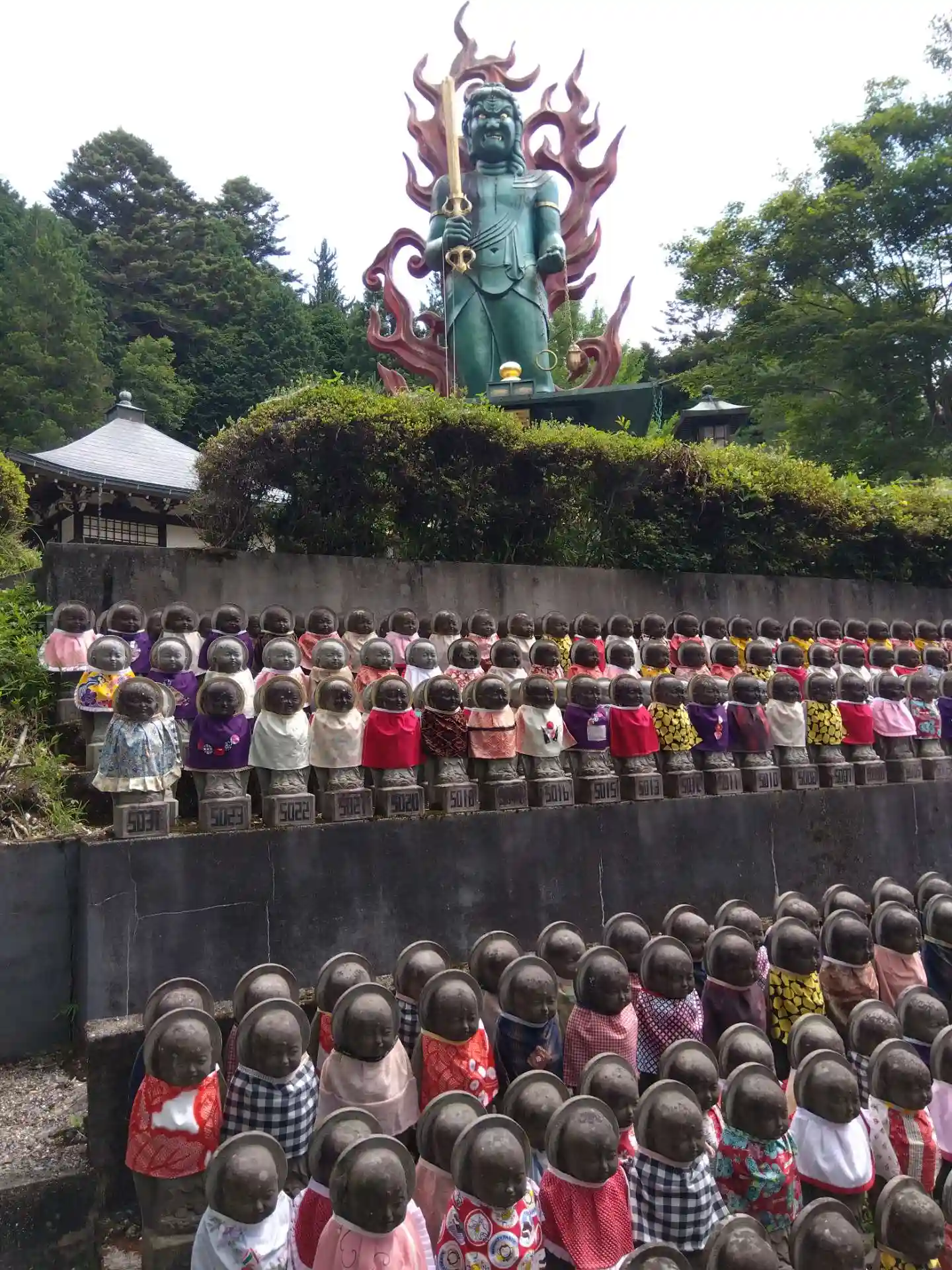 本堂、阿弥陀堂、護摩堂、八十八ヶ所巡り、高さ13mの不動明王像に数え切れないお地蔵さん、などなど。