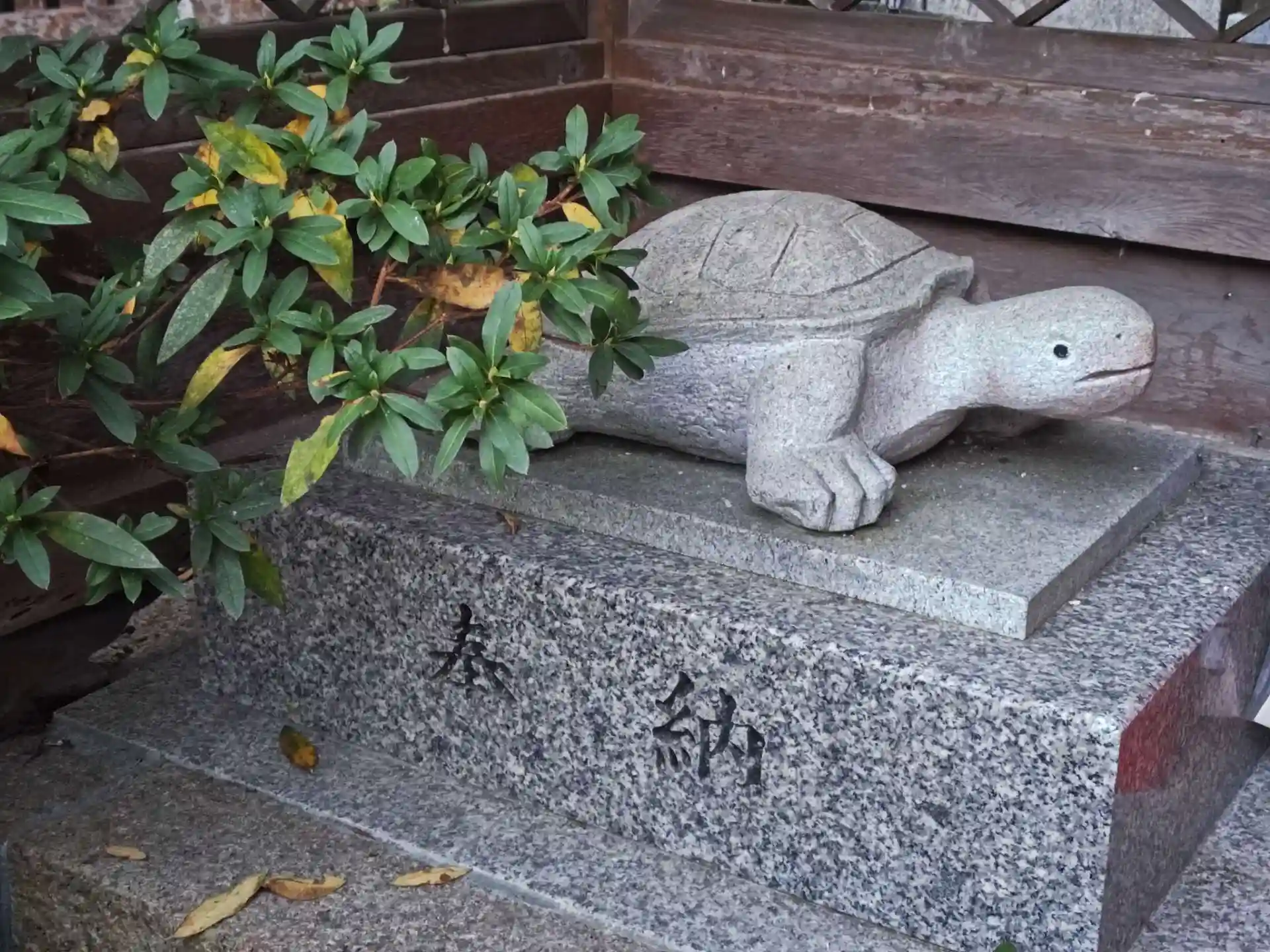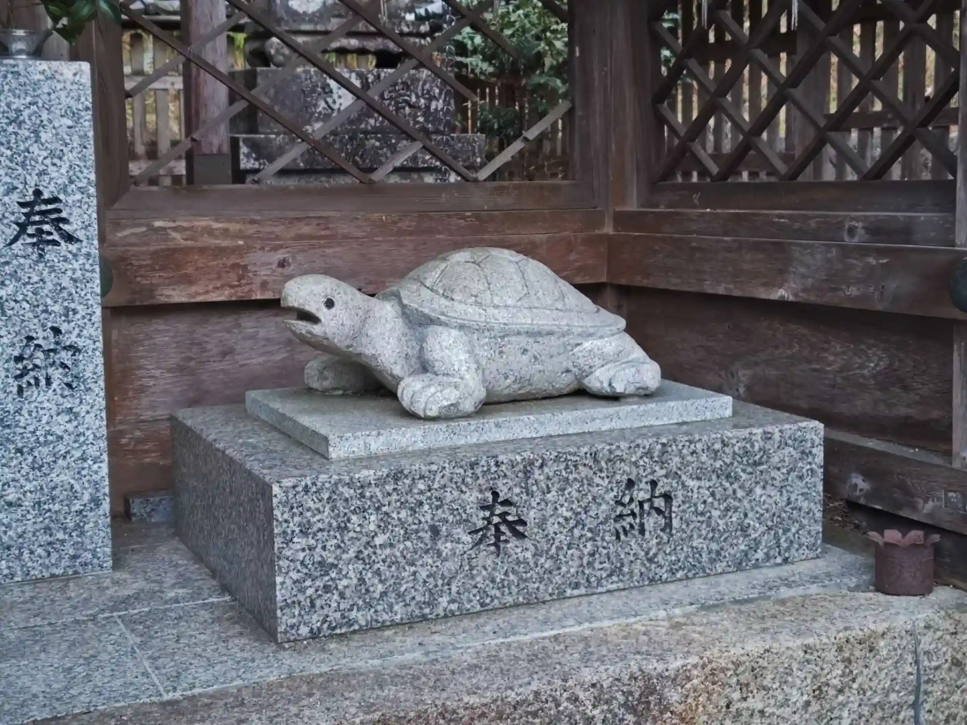 松尾大社の神使である亀が狛犬ならぬ狛亀(石亀)として居ました。