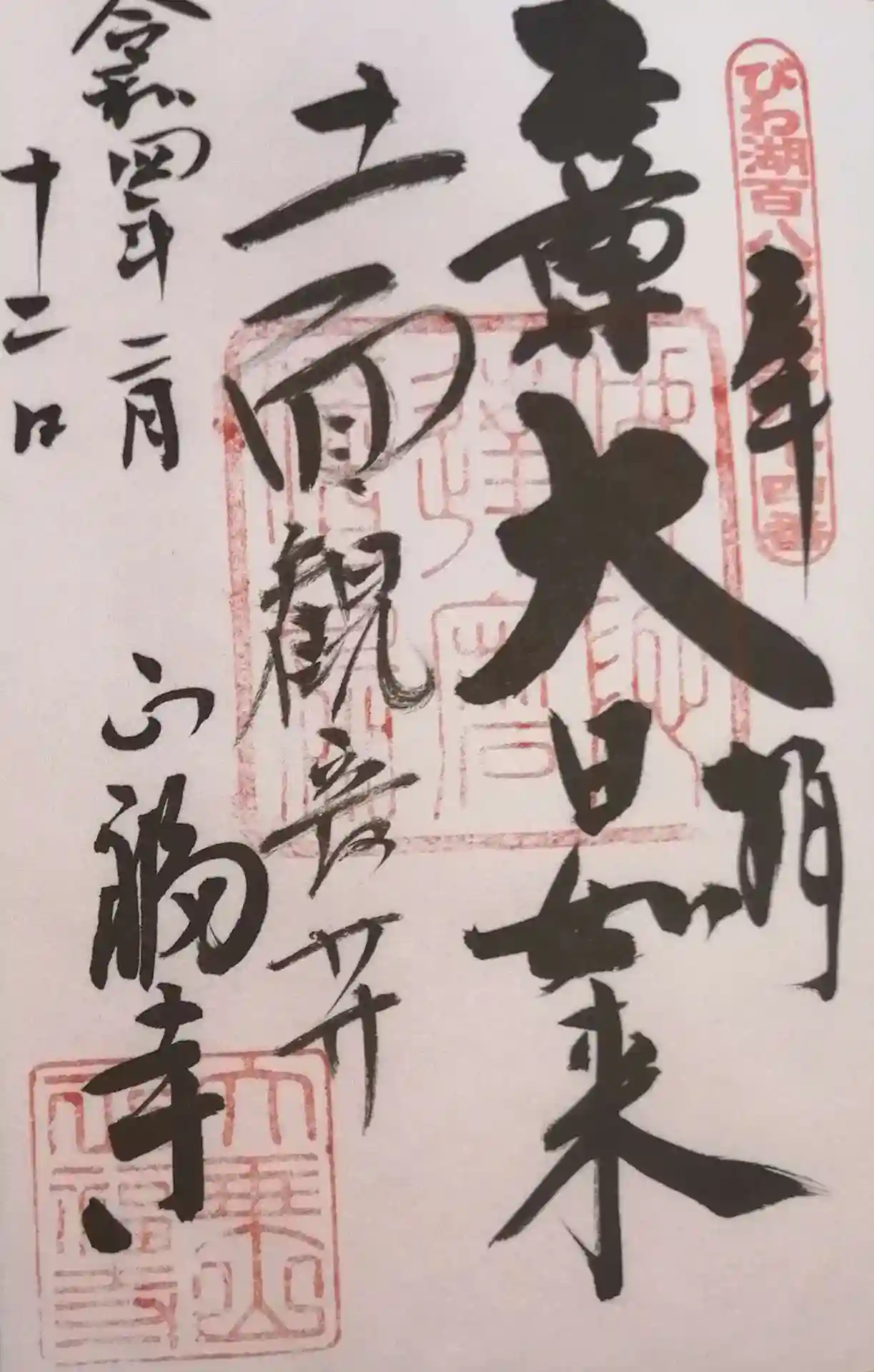 観音堂を後にして本堂へ。須弥壇真ん中に重文の大日如来が祀られていますが秘仏のため厨子の中です。右と左の間には合併した清寿寺と永巌寺の阿弥陀三尊。そうなんです、この本堂には本尊が3つある訳です。実は今年4月から丸3年掛けて本堂の改築工事を行います。それに合わせて須弥壇に3寺の仏像を祀るように変更するとの事です。そして改築が終了したら落慶法要で秘仏·大日如来を開帳するそうです。