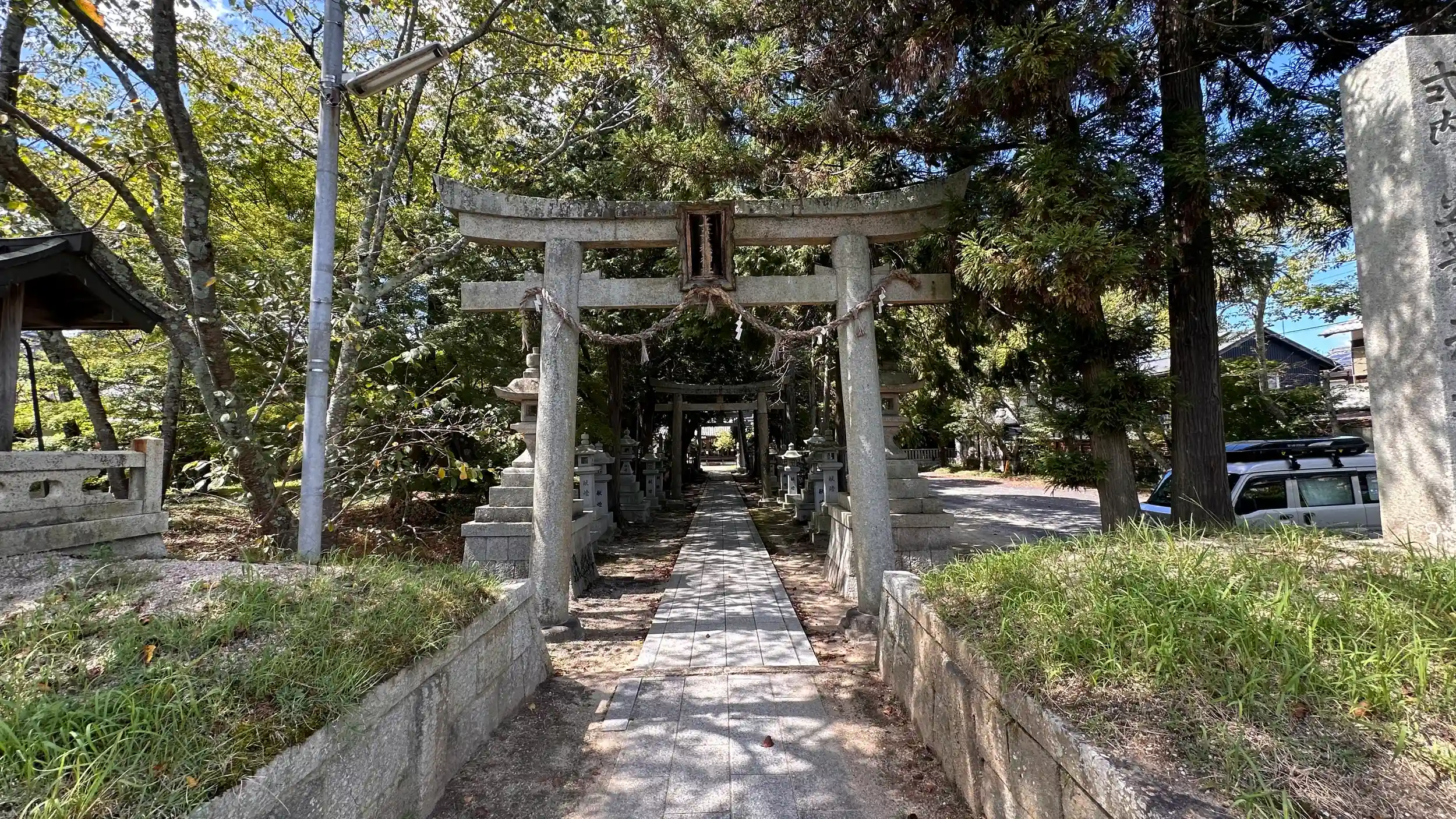 延喜式内社の石部鹿塩上神社。かしほじんじゃと読みます、御祭神 伊邪那岐命、国常立命。本殿 一間社流造 覆屋あり、拝殿 入母屋造。鳥居横に駐車場があります