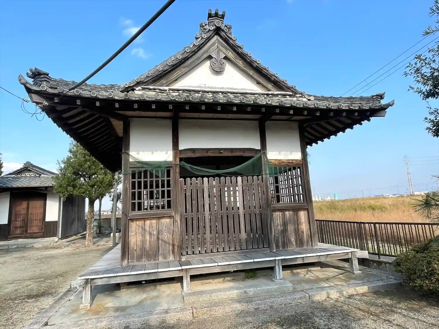野洲川改修のため、昭和47年、旧社より、氏子23戸と共に移転遷宮しました。野洲川洪水によって建物、古書が流失し、創祀由緒は不詳ですが、延暦年間伝教大師自筆の般若経理趣文一巻を大蜊が背負い法竜川を逆上って神社へ納め、郷民奇異霊感、処々に池を造って蜊を鎮め霊社としたと伝わっています。