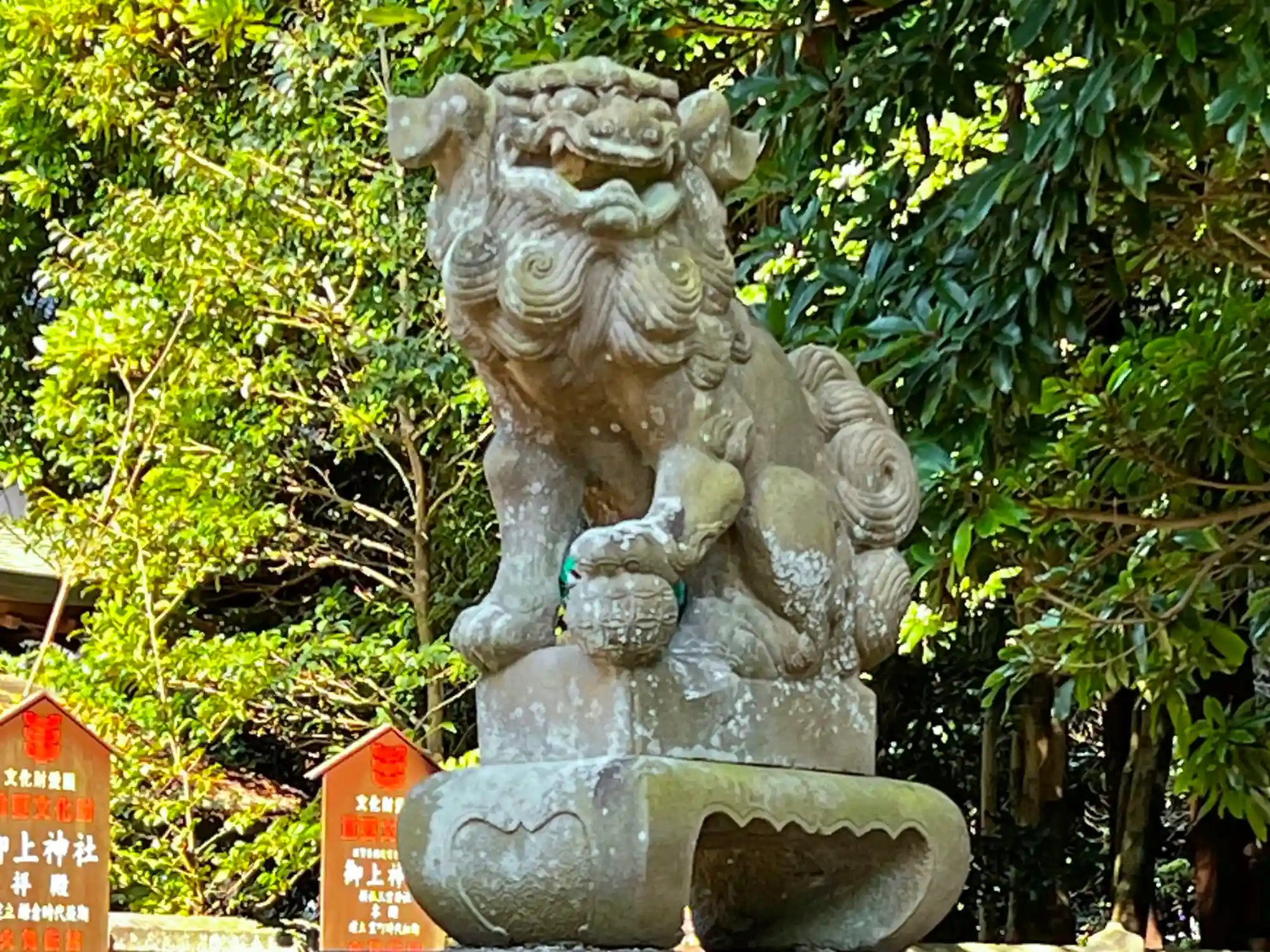 参道右側の<狛犬>。こちらはあまり傷んでいない。