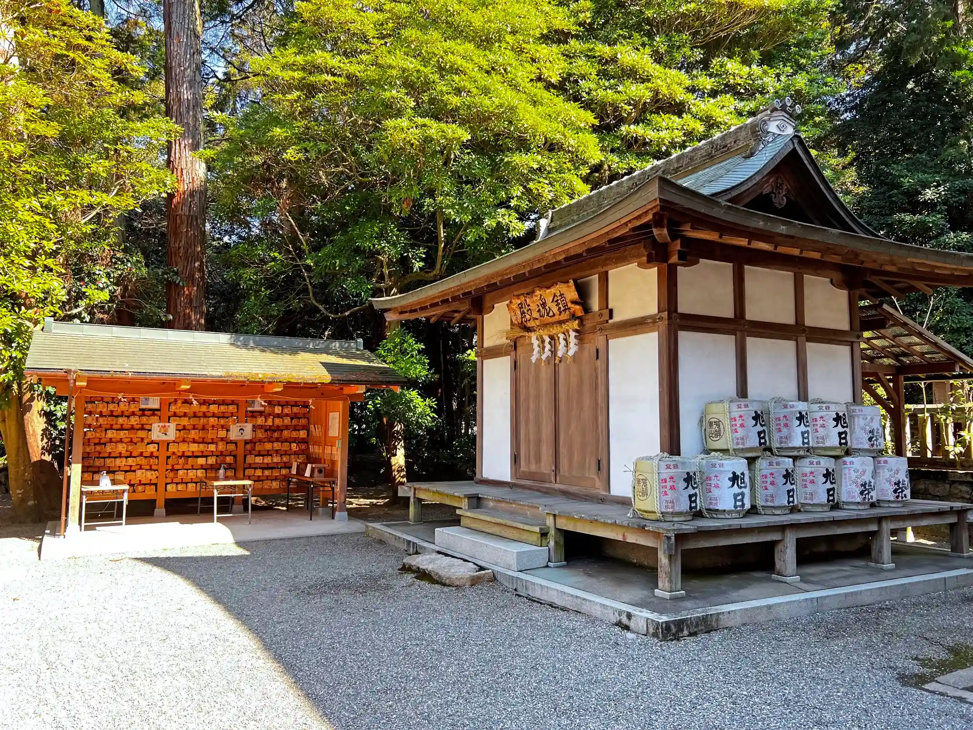 楼門をくぐって右手にある<鎮魂殿>と<絵馬殿>。