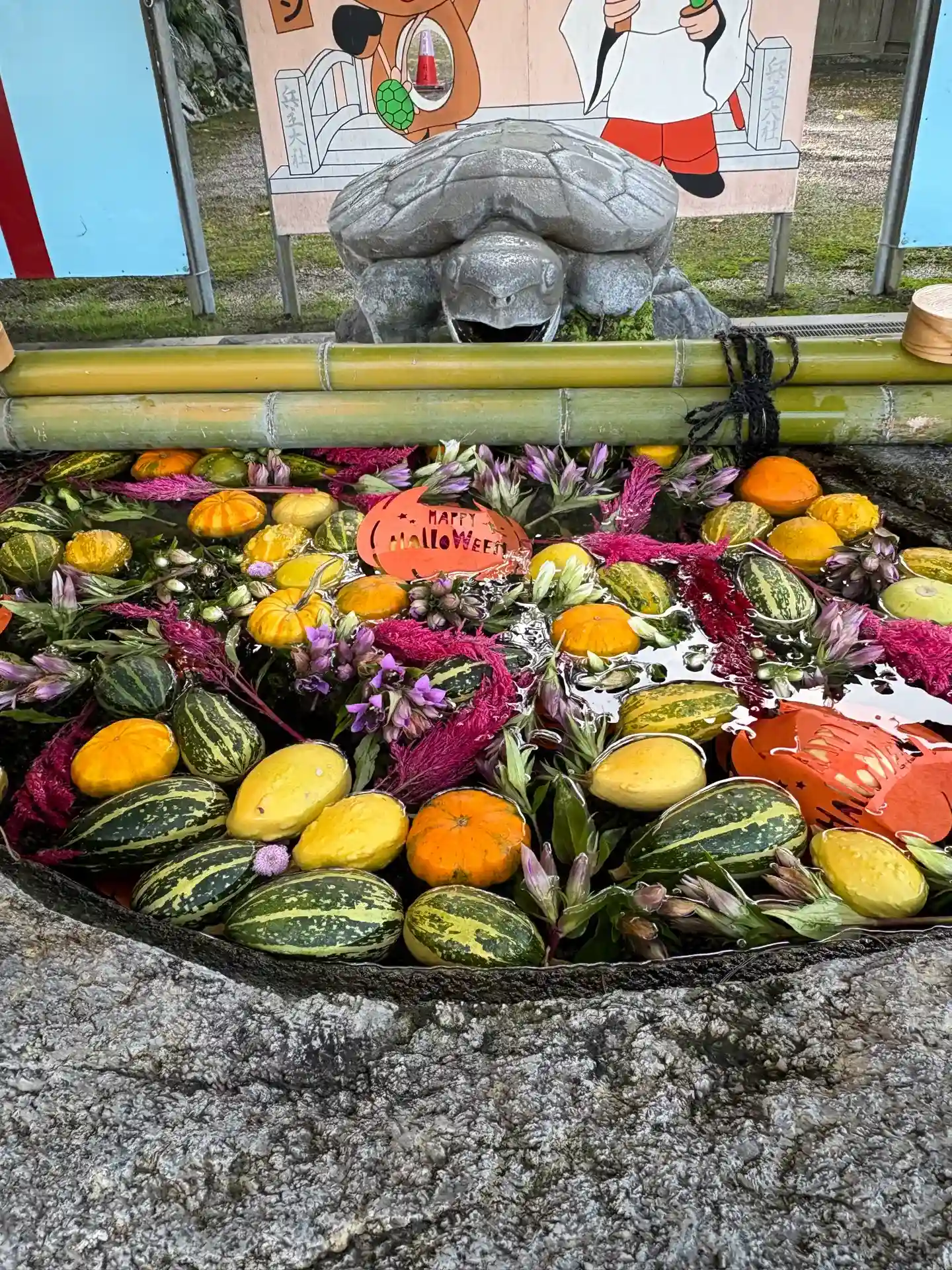 花手水はあちこちで見られるようになったが、なんとこちらはハロウィン手水!