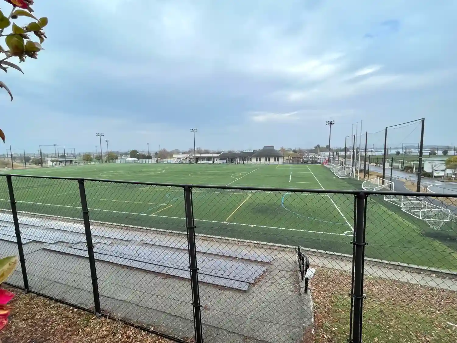 社殿の裏からサッカー場が見渡せます。