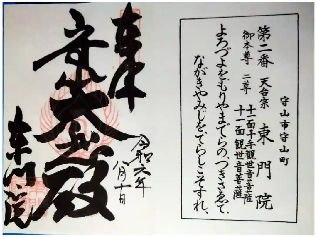 御朱印「近江西国三十三所霊場 第二番札所」