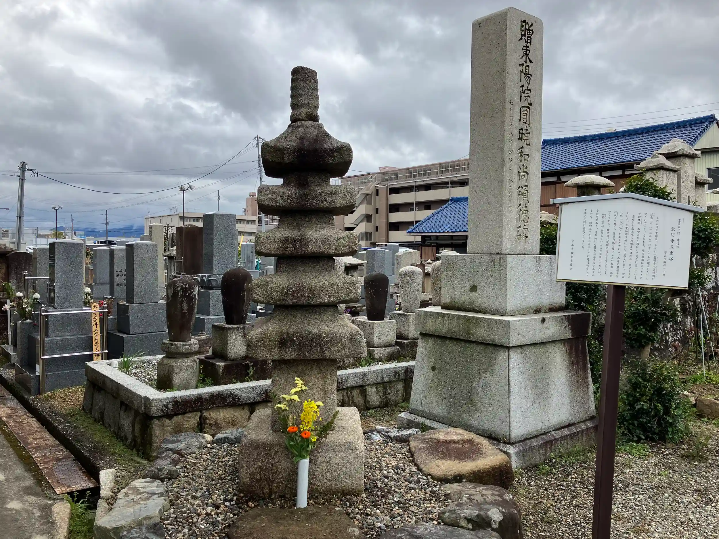 時頼が寺院とともに寄進したとされる石造五重塔は重文指定されている。