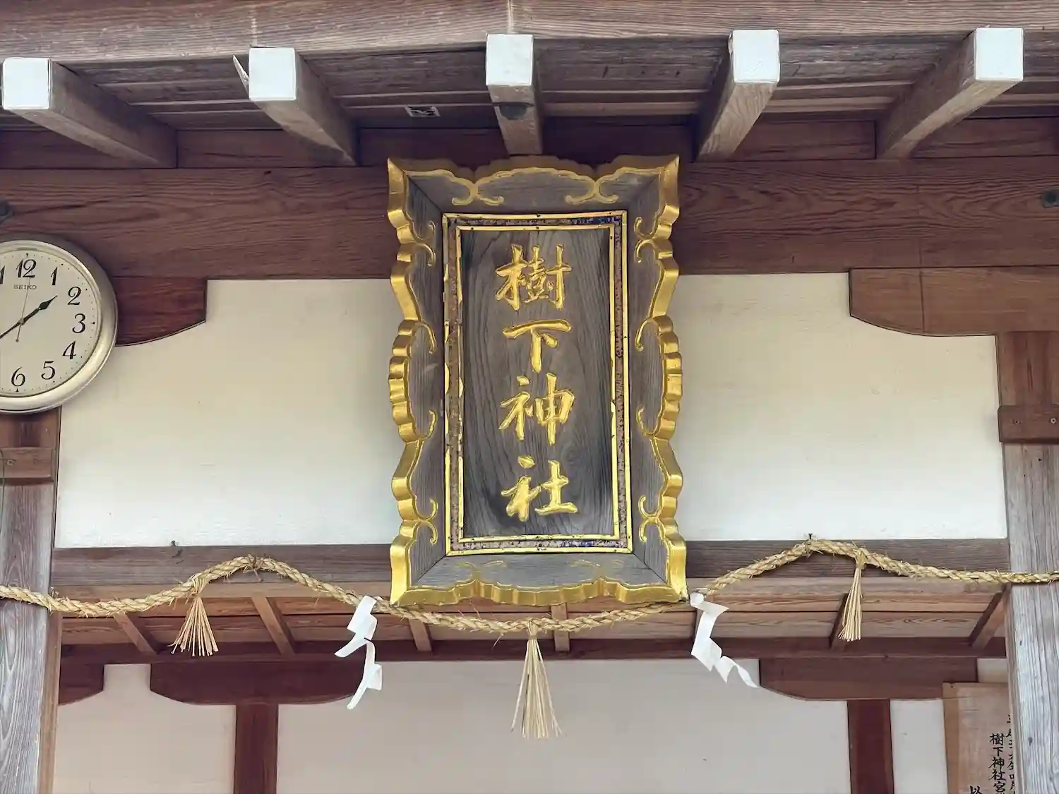 創建は延久3年(1071)に勧請されたのが始まりとされます。寛永年間に社殿が再建、吉川の大洪水で大破し、明治15年に現在地に遷座しています。当初は十禅師宮と称し神仏習合していましたが、明治時代初頭に発令された神仏分離令により仏式が廃され樹下神社に社号を改称しています。日吉大社(大津市坂本)に鎮座する樹下神社は本社にあたり、祭神である稲田姫命を祭っています。