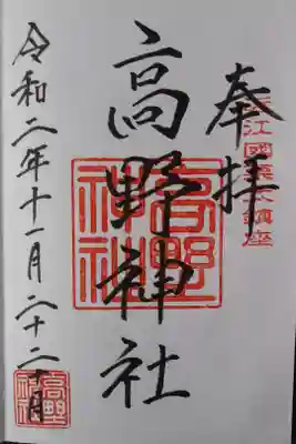 高野神社の御朱印・御朱印帳