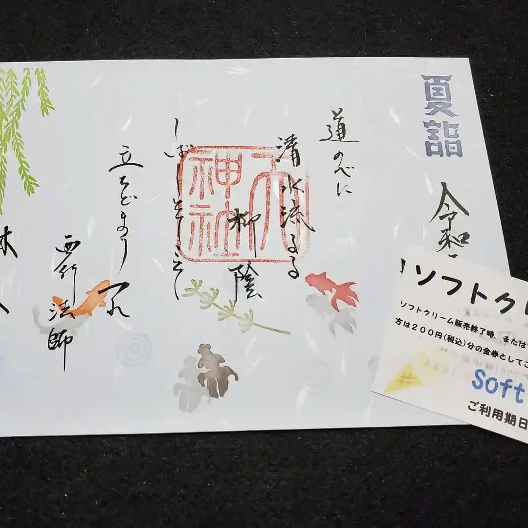 夏詣期間中は、見開きもしくは月毎がわりの片面二種セットでお受けの方に、近くの洋菓子メリーポエムさんのソフトクリーム無料券を差し上げます。