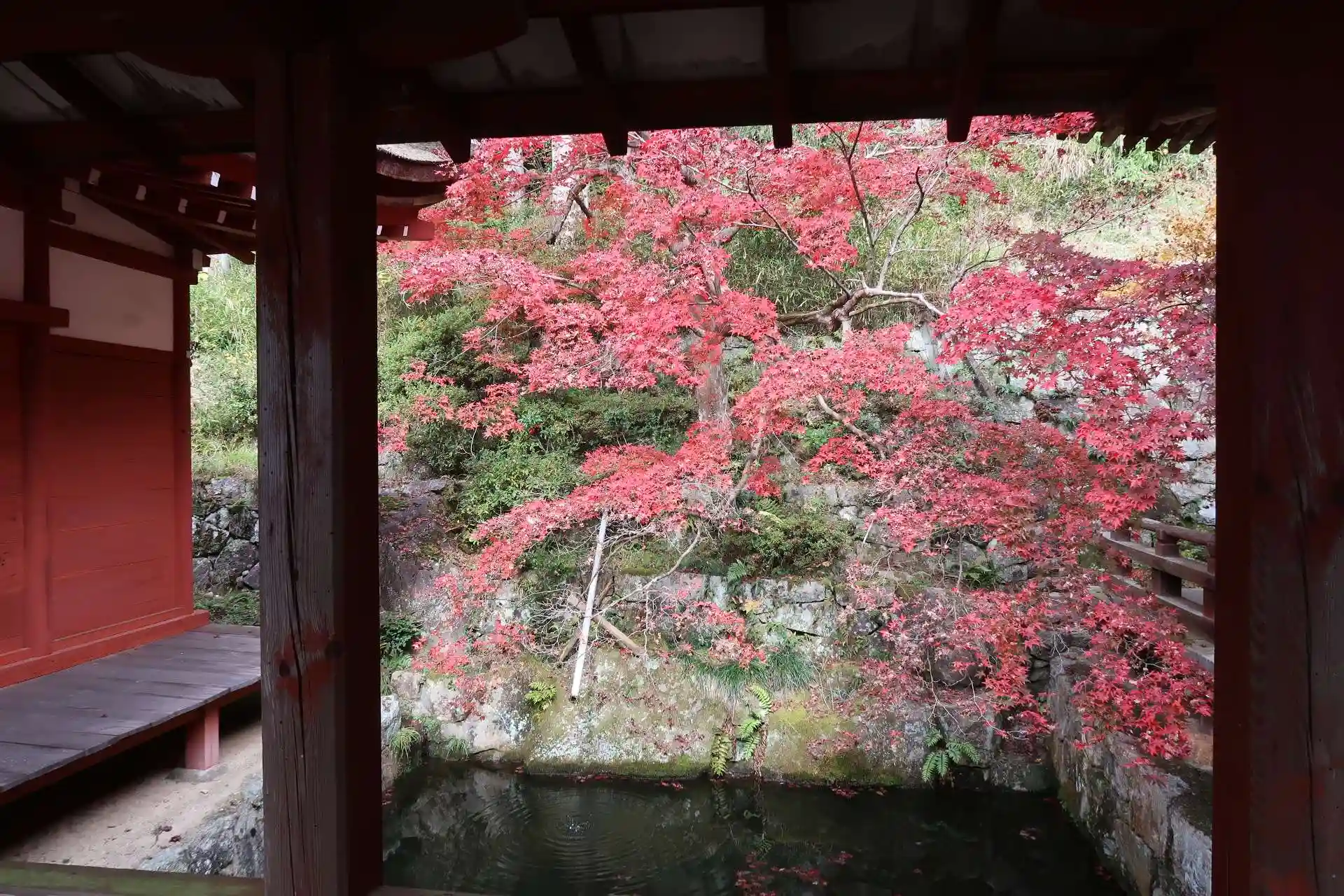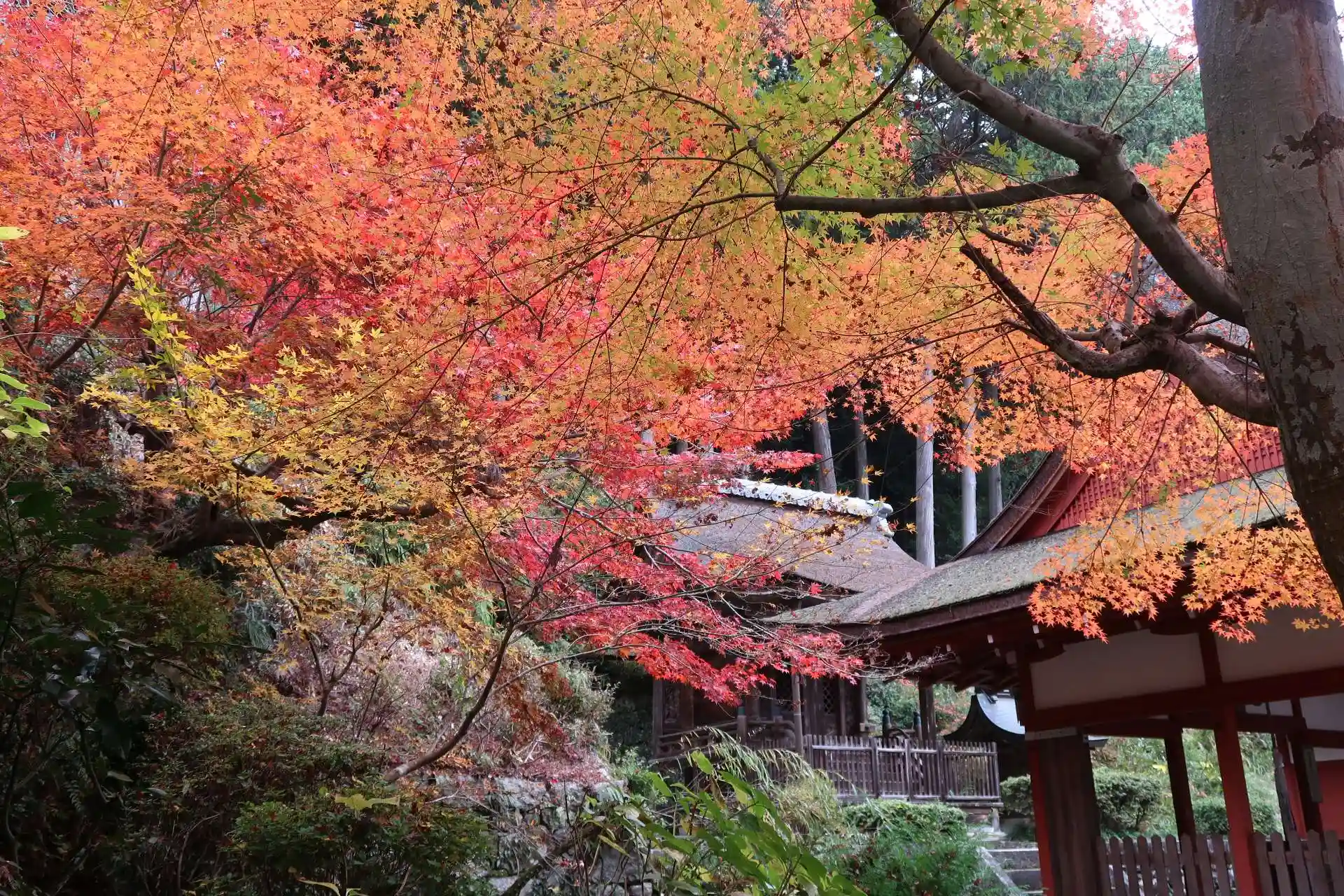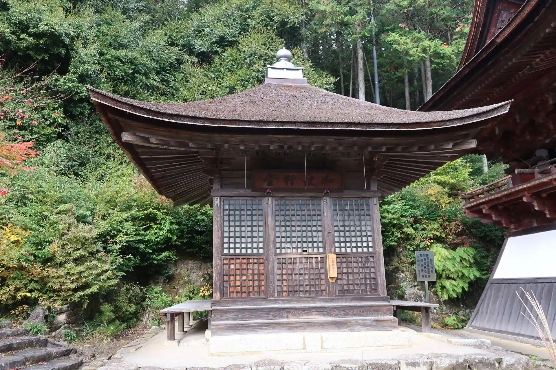 その先の石段を上がると鐘楼、振り返ると紅葉と諸堂のコラボがとても綺麗でした。鐘楼の奥に如法行堂でした。