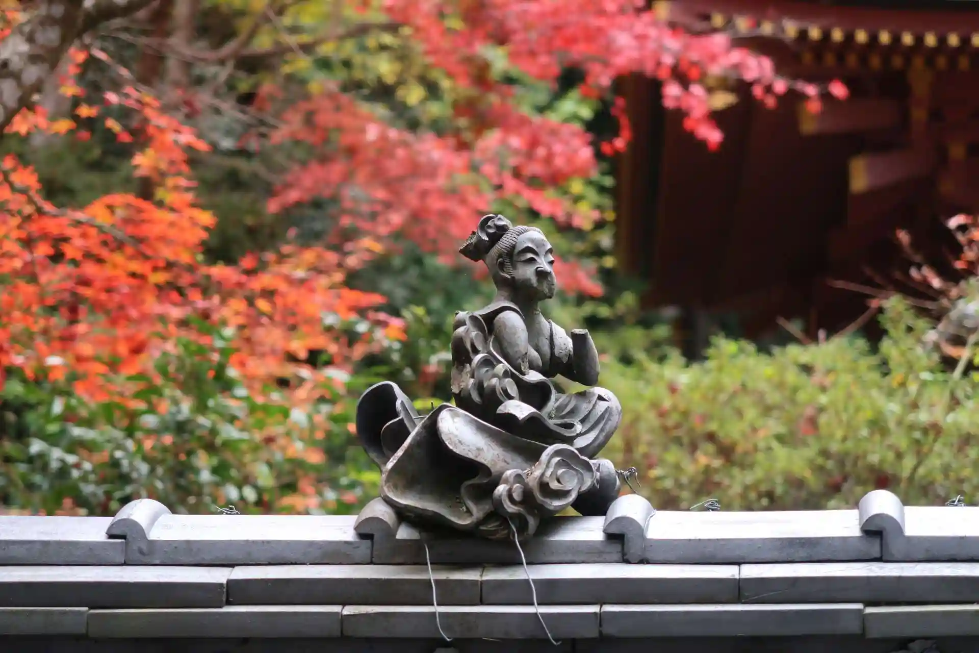 参道入口前の駐車場と山上駐車場の2ヶ所の無料駐車場があります。(駐車場も入山料も無料なのはとても有難いです。)今回は膝痛があったので山上駐車場に停めました。参道入口から本堂まで石段が808段、山上駐車場からは100段位です。冠木門タイプの山門をくぐると手水、更に最後の石段を上がると本堂前に出ます。先ず目に入いるのは三重塔、赤っぽいのが珍しい。紅葉の赤とマッチしていますね。紅葉も綺麗でした。手前には閼伽井堂と護摩堂。振り返ると木々の向こうに琵琶湖が見えます。