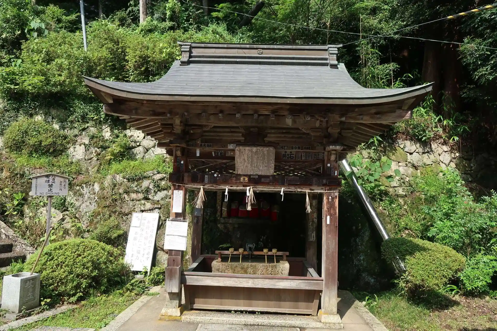 参道入口前の駐車場と山上駐車場の2ヶ所の無料駐車場があります。最近筋力の衰えを感じており、山上駐車場に停めました。(山上駐車場からなら100段位上がれば本堂前に出ます。)冠木門タイプの山門をくぐると手水、更に最後の石段を上がると本堂前に出ます。
