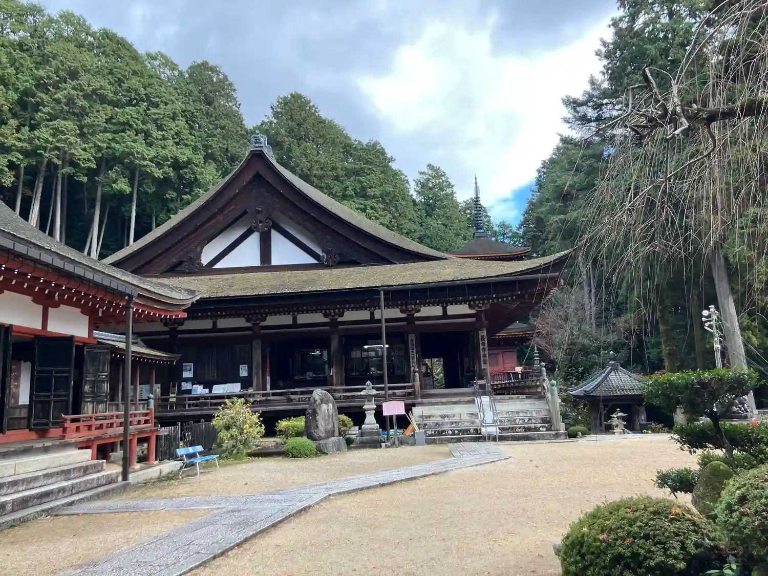 山の中腹にあり、本堂を含め、横長の境内です。