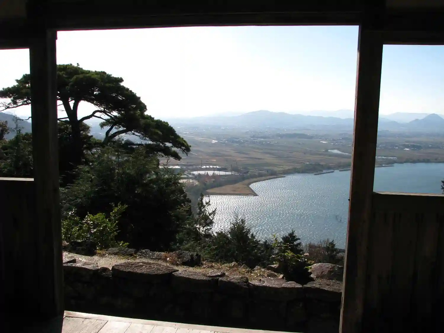 本堂から琵琶湖が見えますが、逆光で綺麗に撮れませんでした。