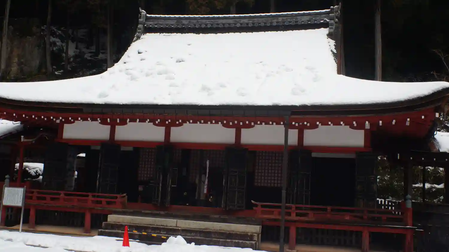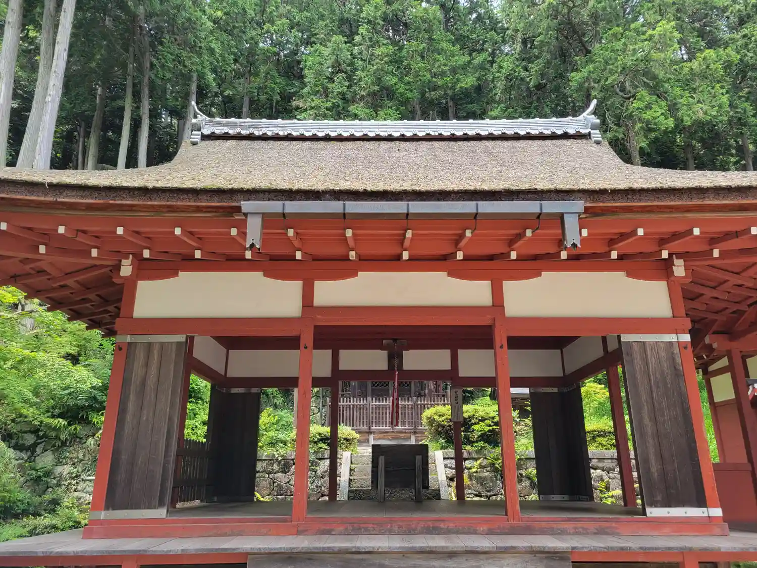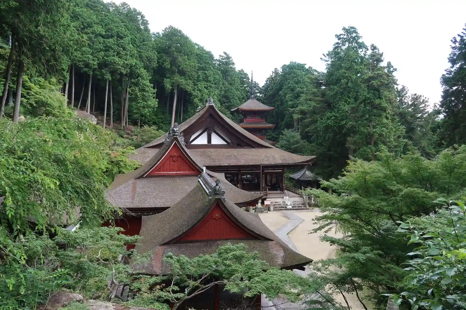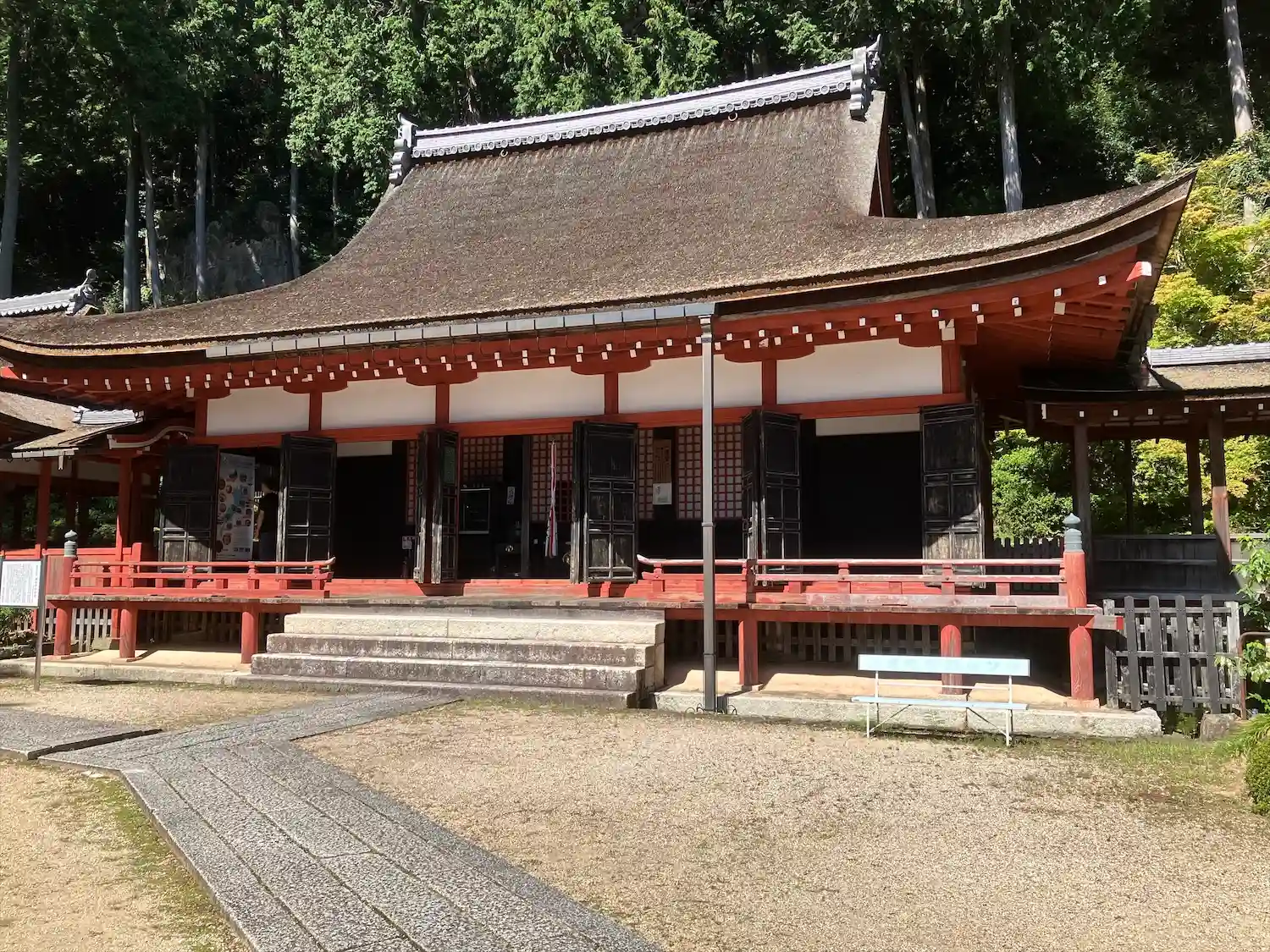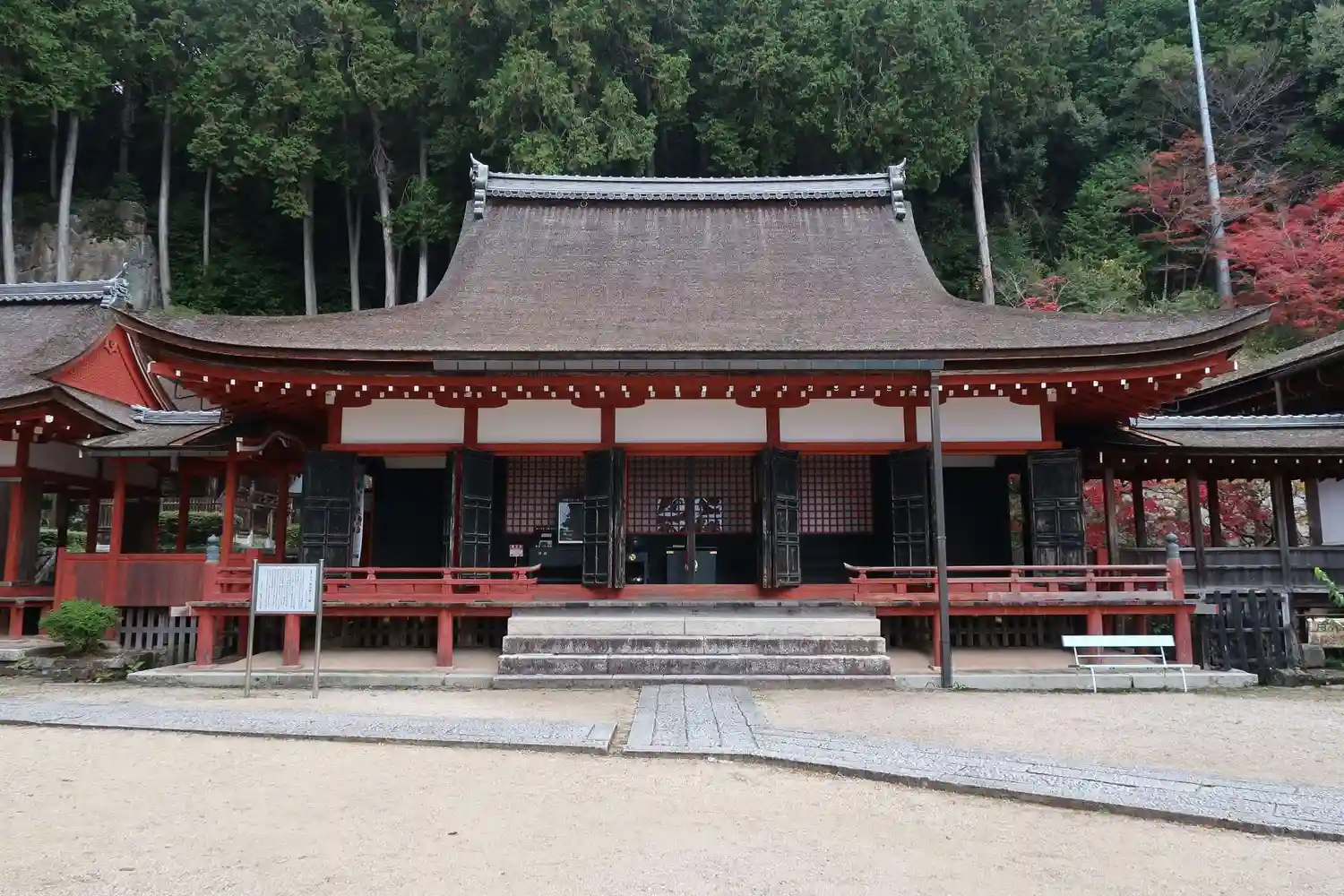 いよいよ<本堂>。1516年に焼失後、1522年から1524年にかけて再建。当寺最古の建築。桁行七間、梁間六間、一重、入母屋造、檜皮葺。国指定の重要文化財。