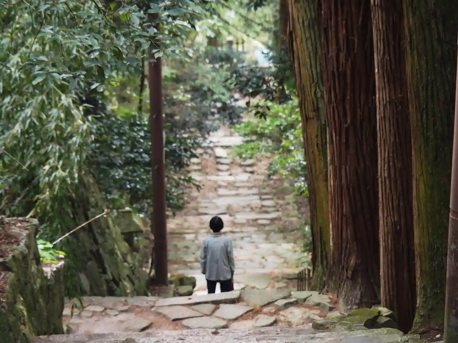 ここから長くて怖い道が続くの。🦟🐝🐜🦟🦟🦟🐝夏には虫除けスプレー必須アイテム。階段は808段らしい。