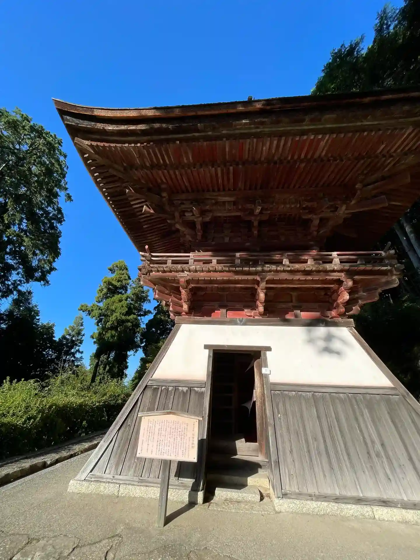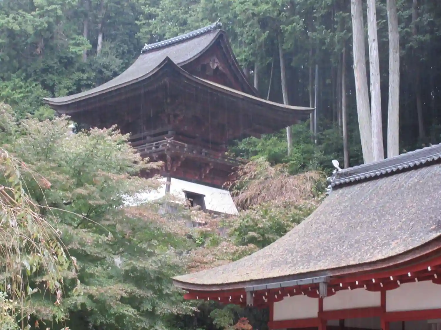 如法行堂の東側にある<鐘楼>。1608年の建立。入母屋造、檜皮葺、重層、袴腰付。国指定の重要文化財。