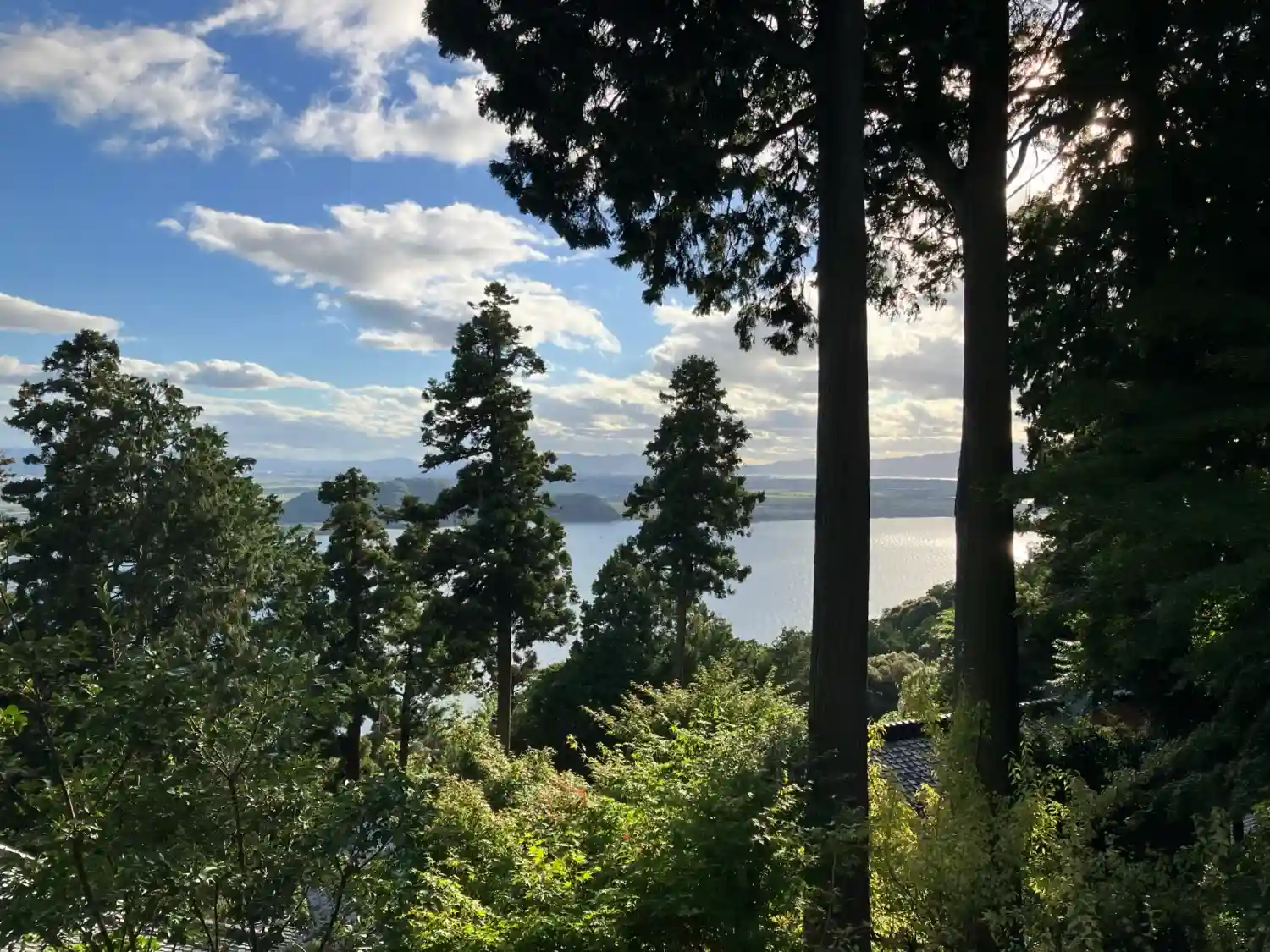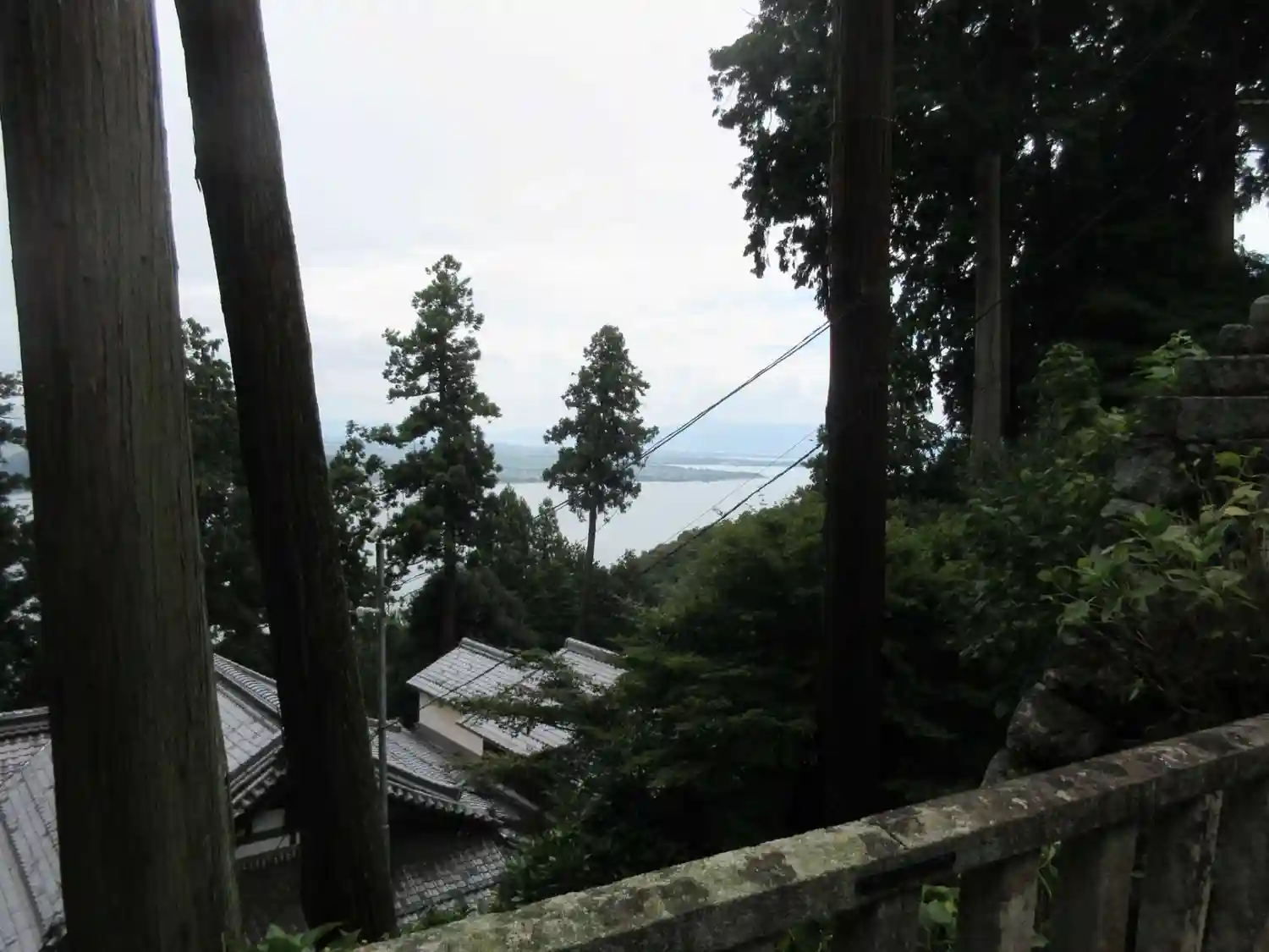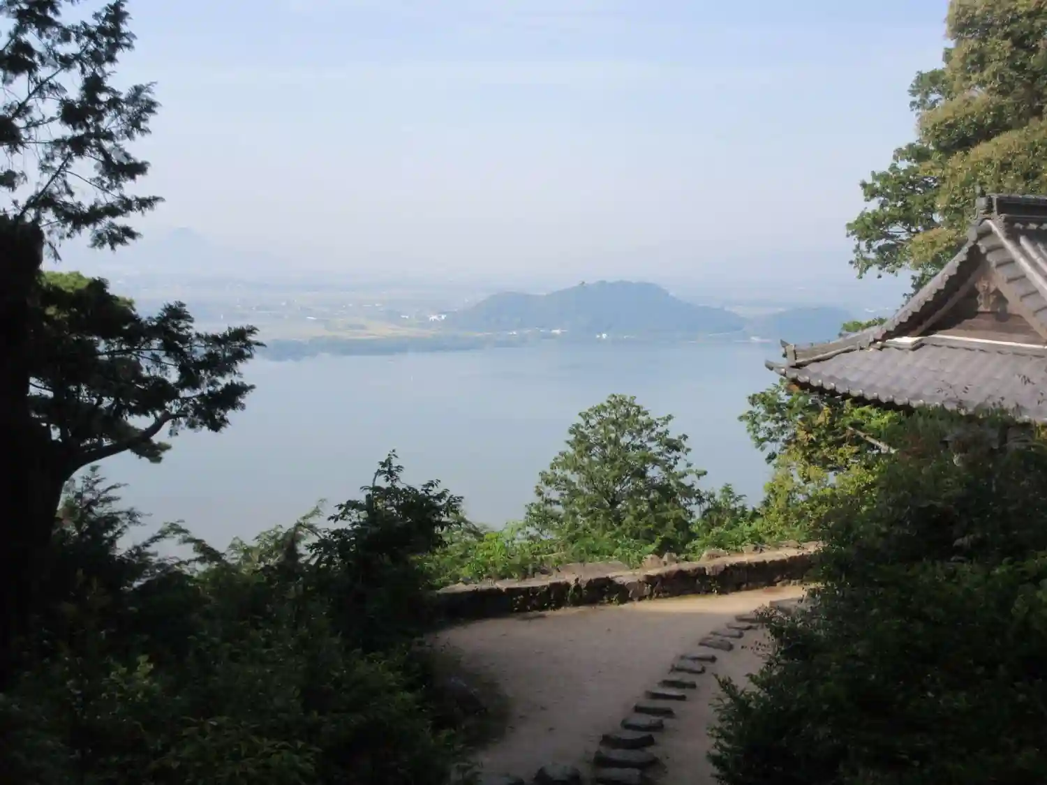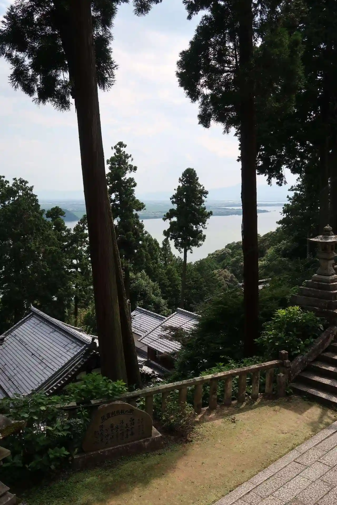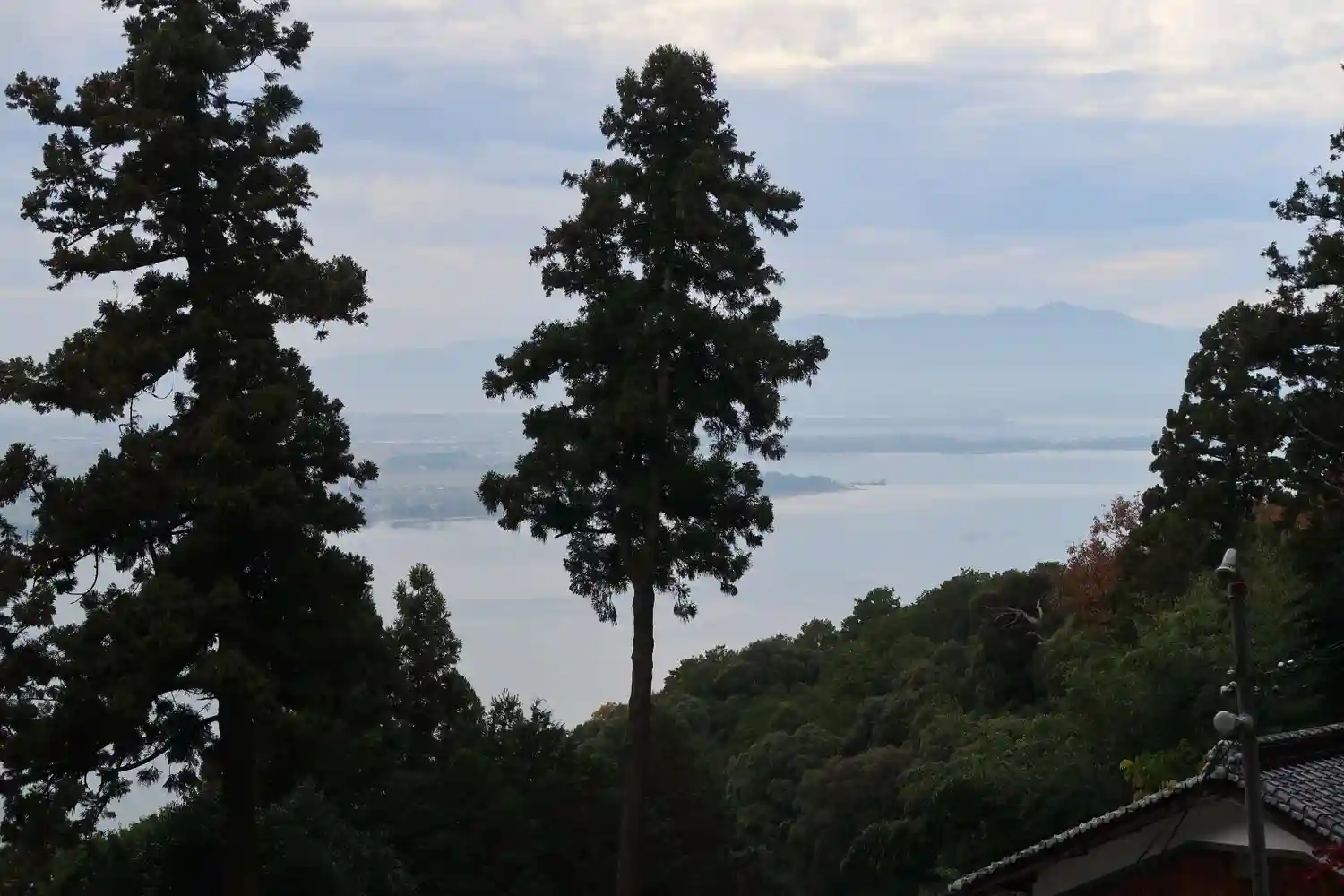 本堂から琵琶湖が見えますが、逆光で綺麗に撮れませんでした。
