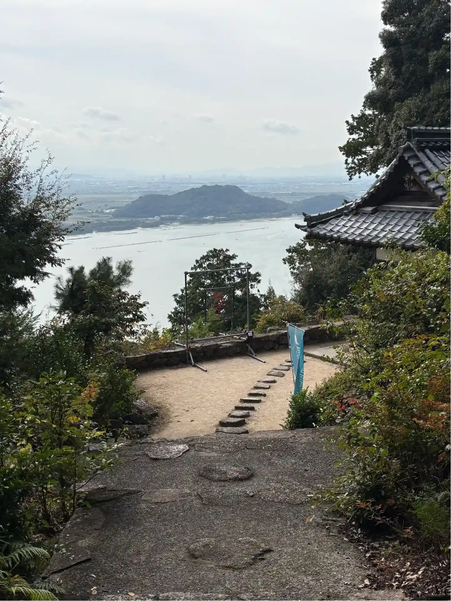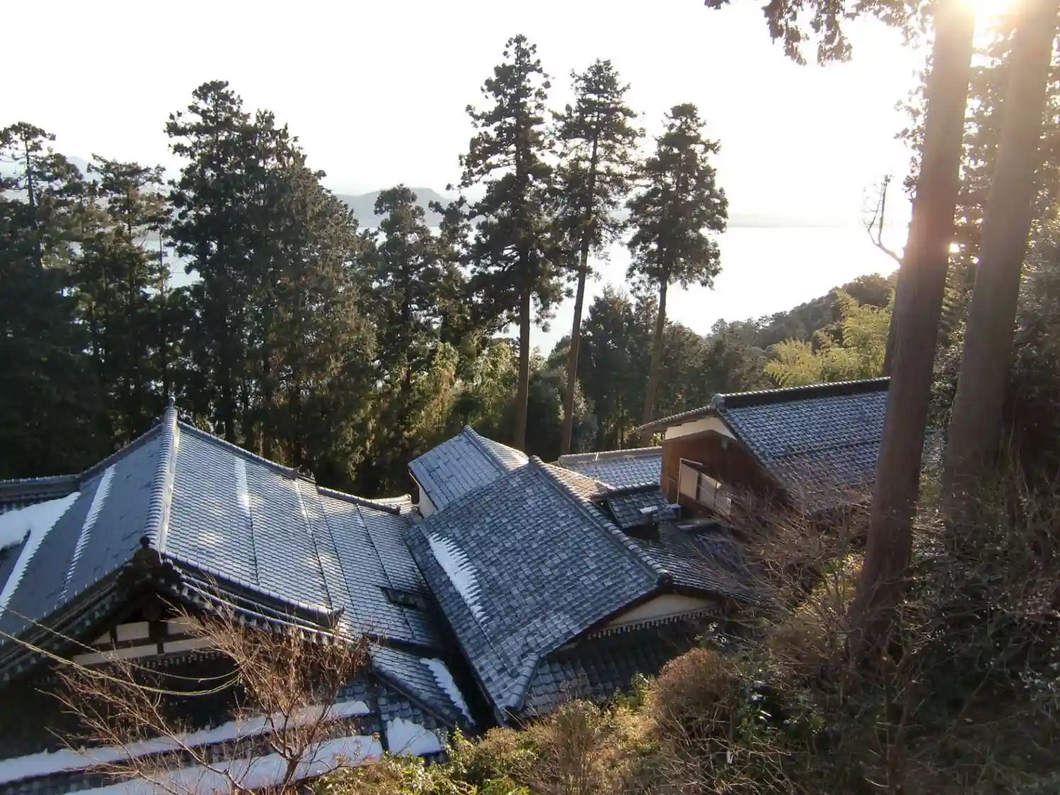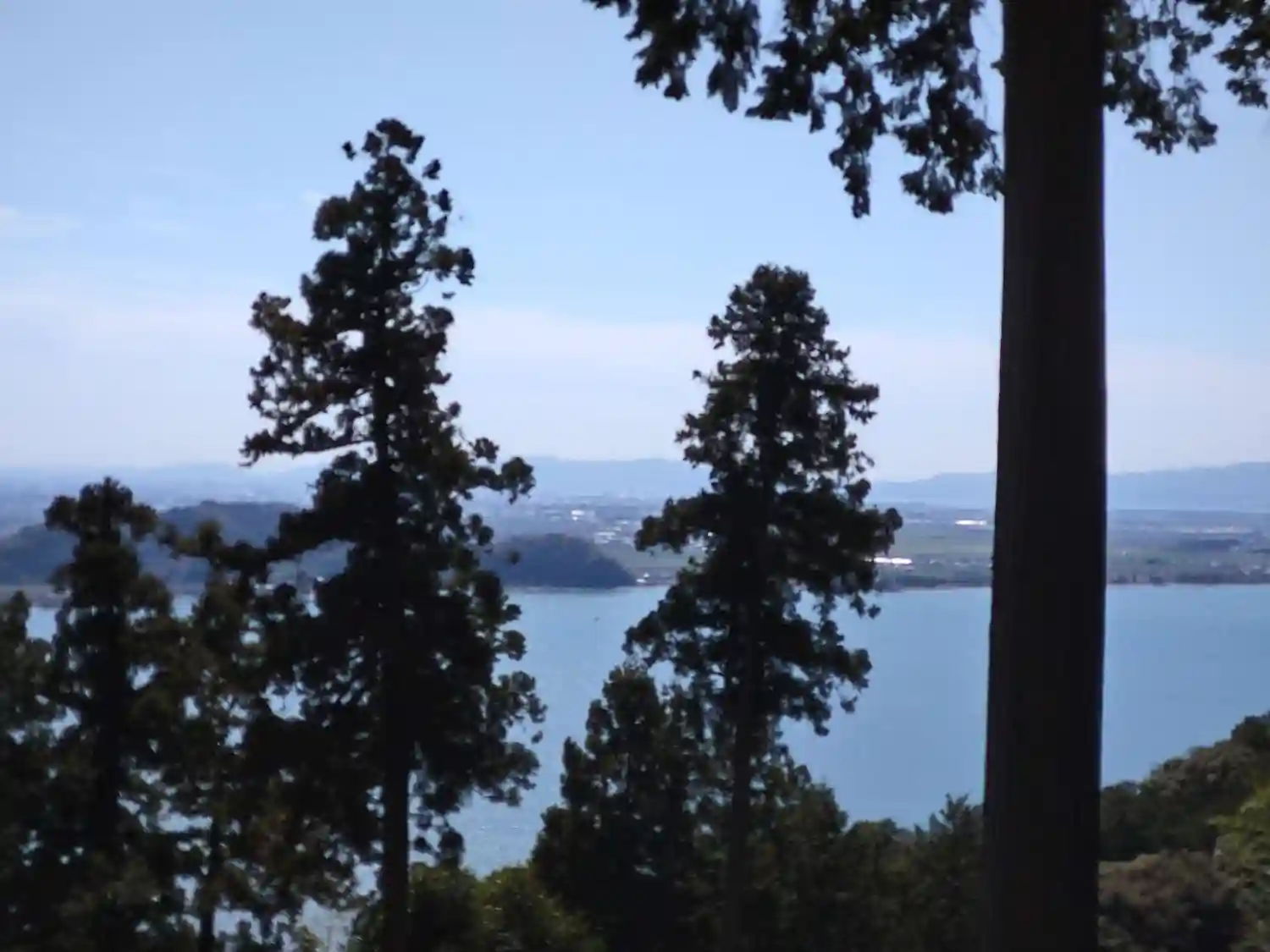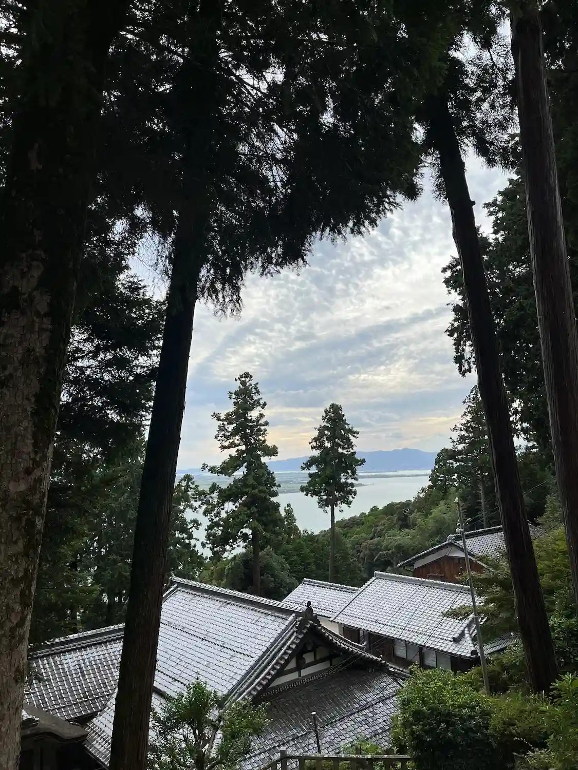 本堂から琵琶湖が見えますが、逆光で綺麗に撮れませんでした。