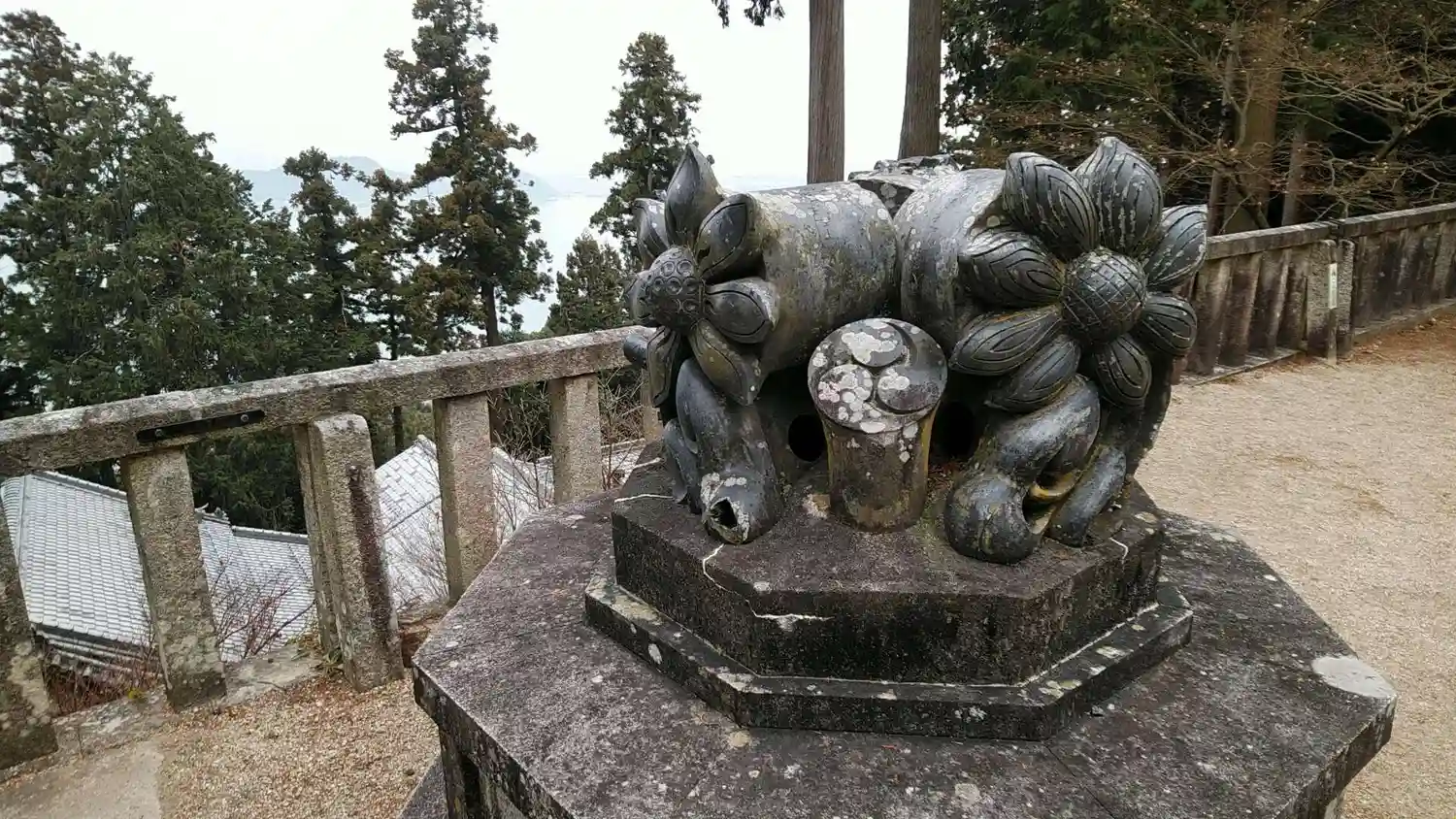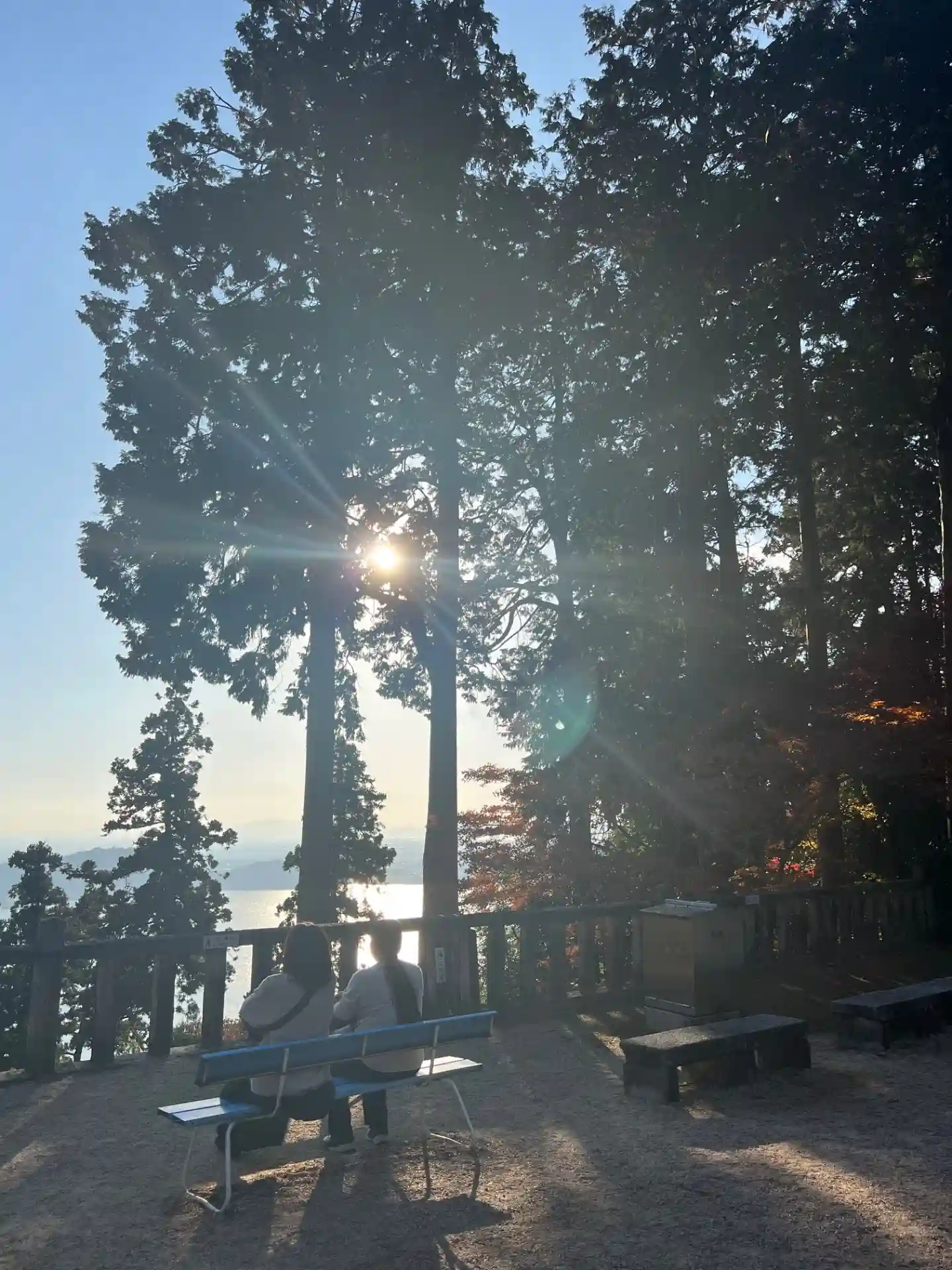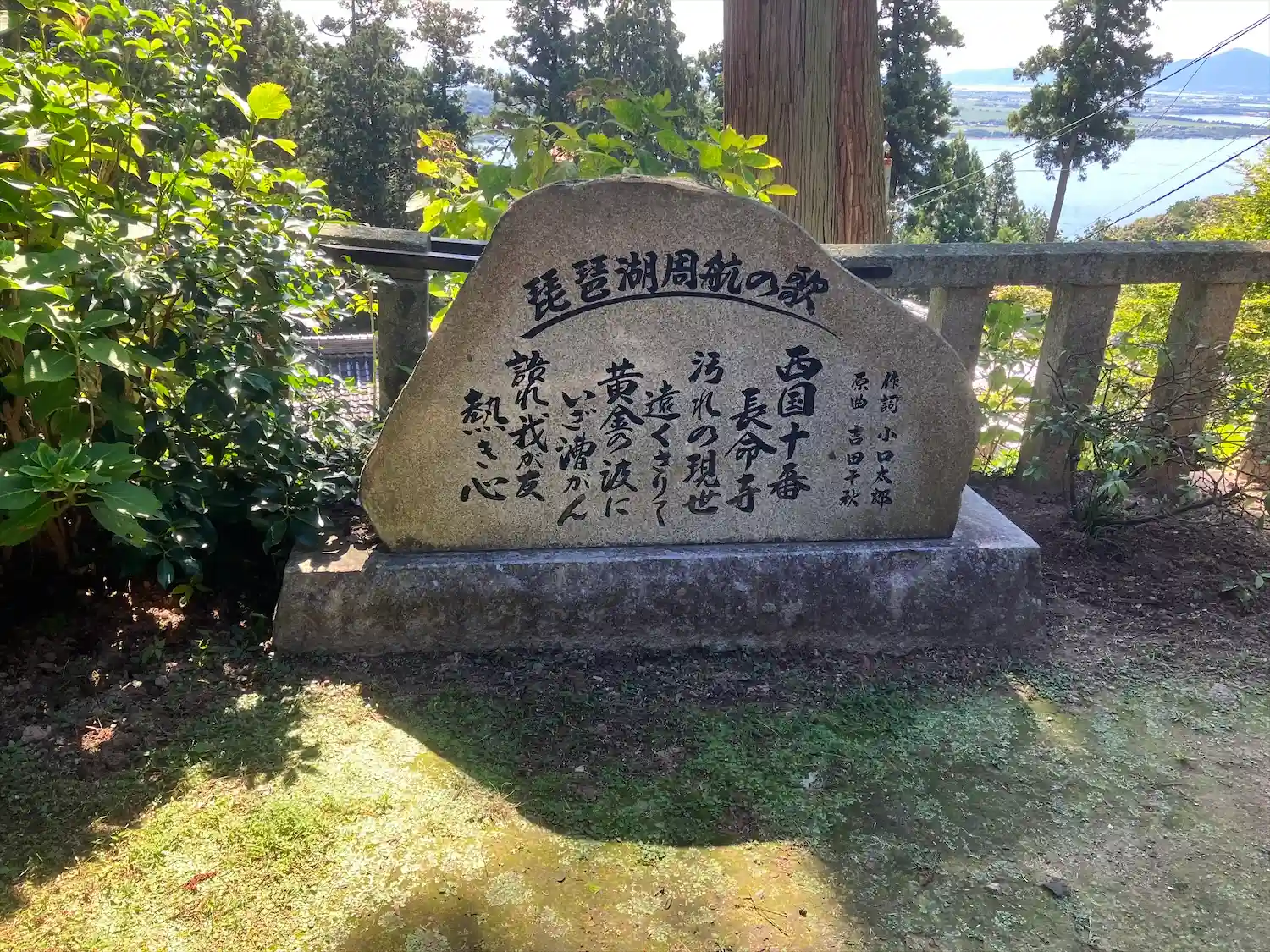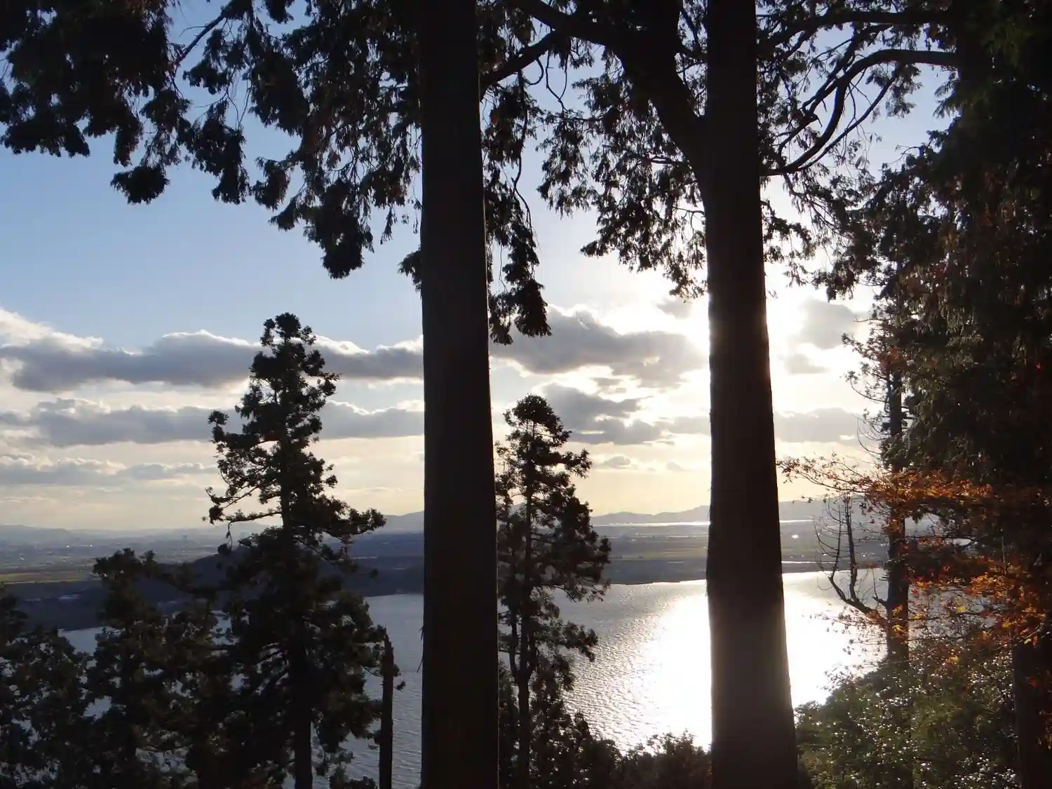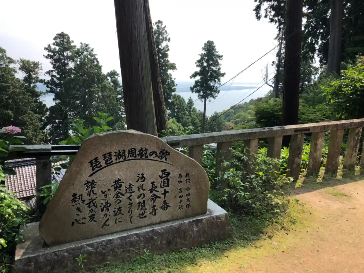 本堂から琵琶湖が見えますが、逆光で綺麗に撮れませんでした。