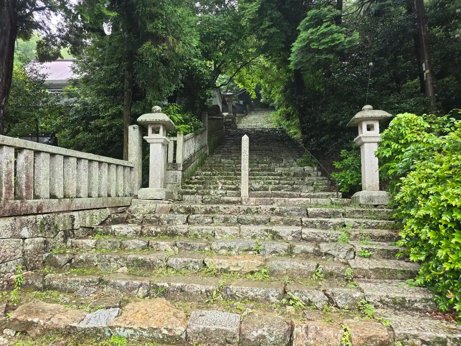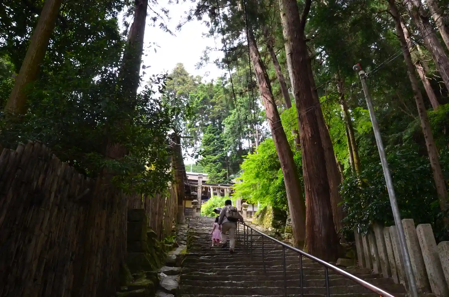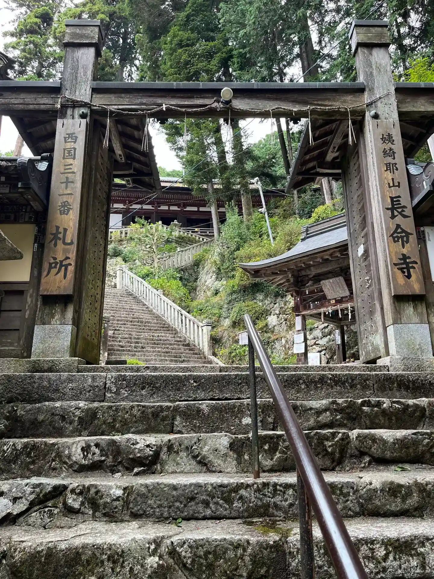 麓から本堂に至る808段の長い階段(駐車場からは