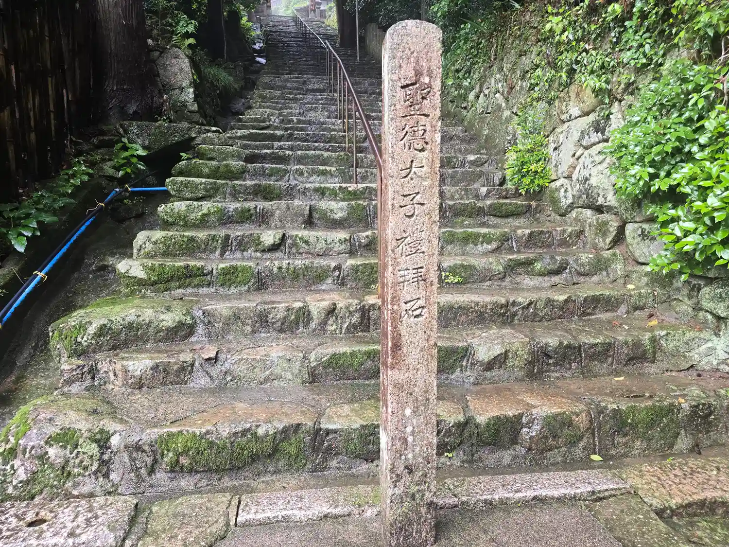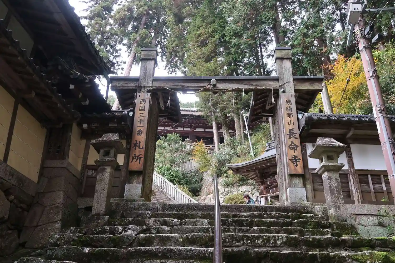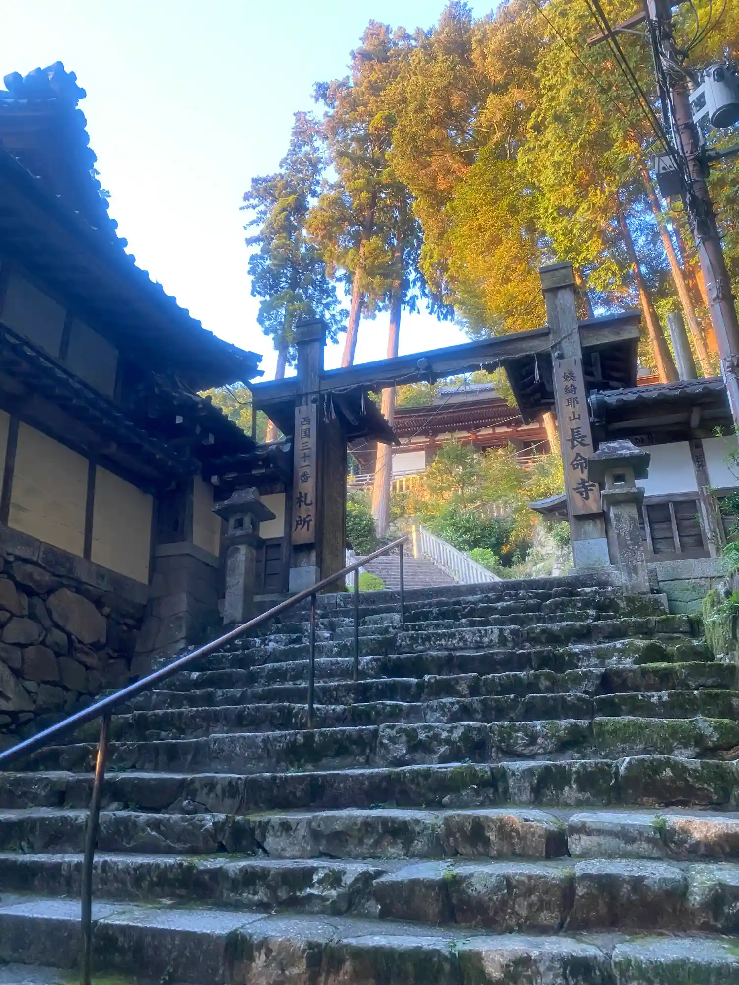 麓から本堂に至る808段の長い階段(駐車場からは