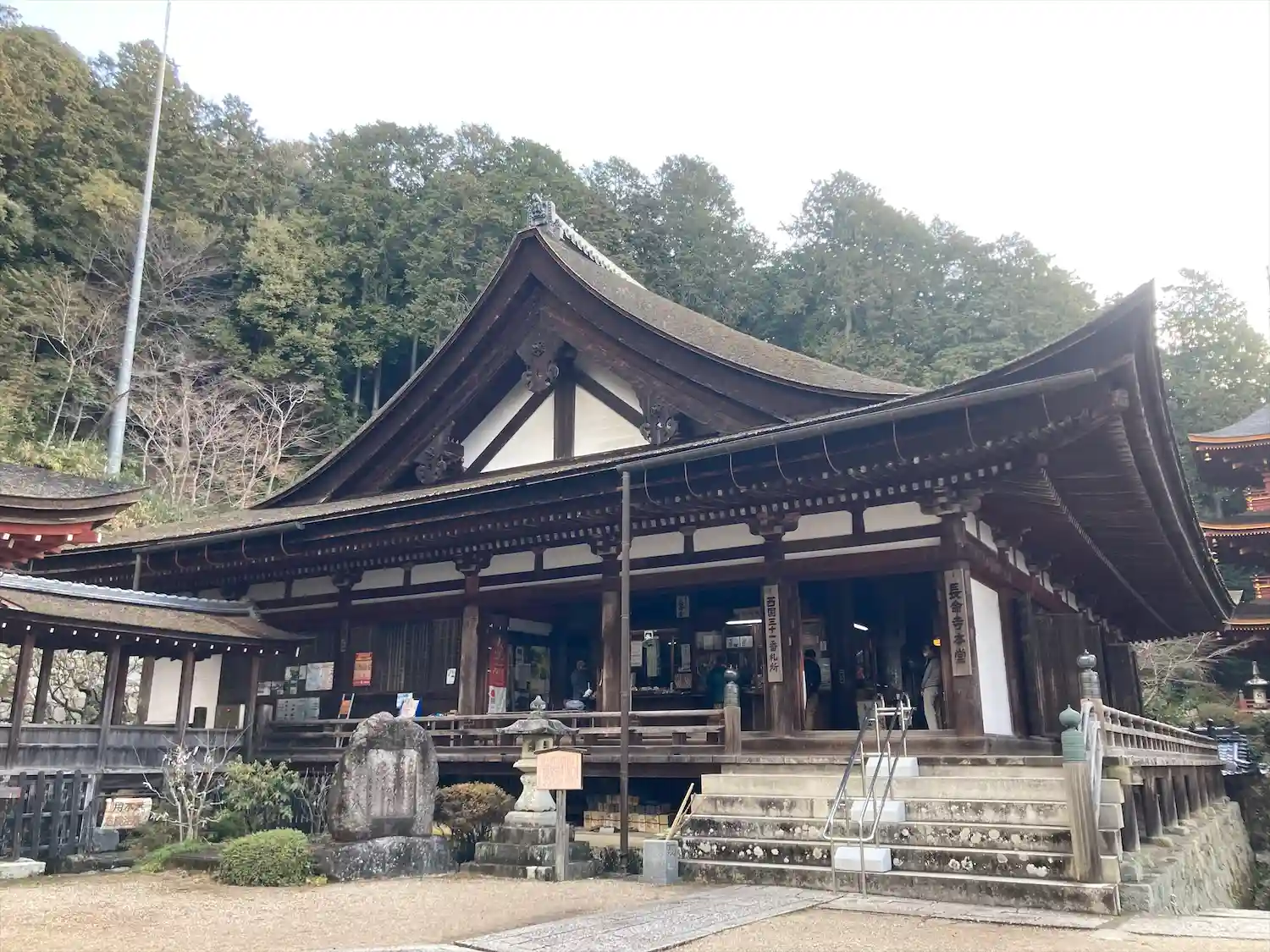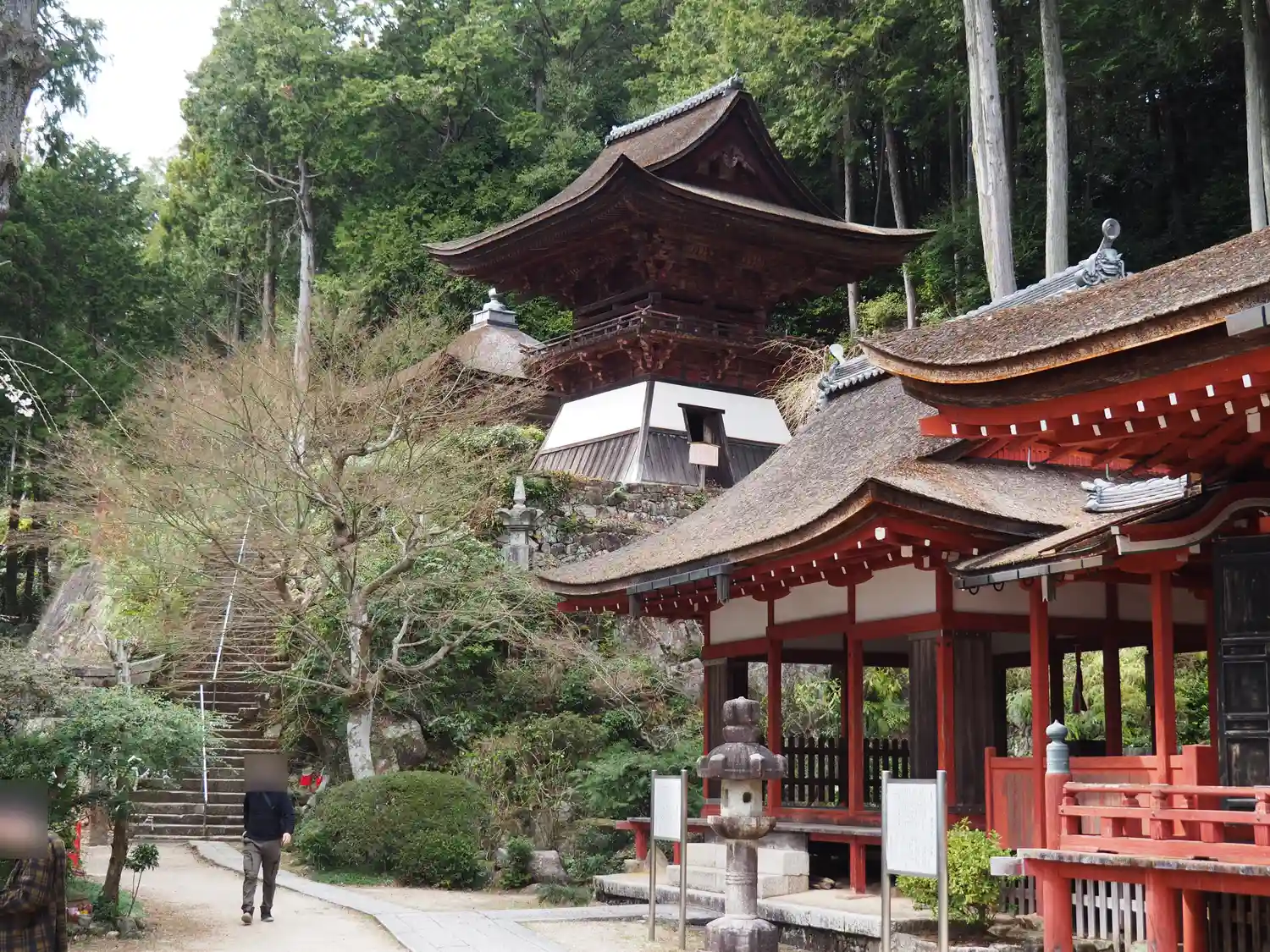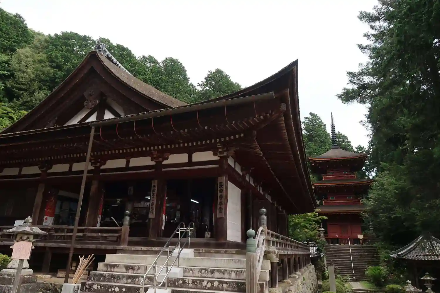 姨綺耶山 長命寺(ちょうめいじ, 天台宗系単立, 619年) 本堂(重文), 鐘楼(重文), 三重…