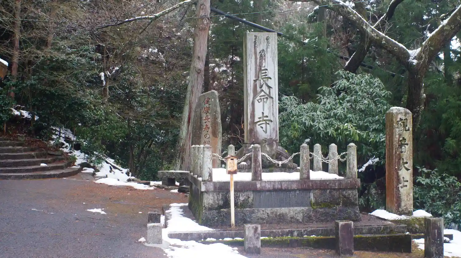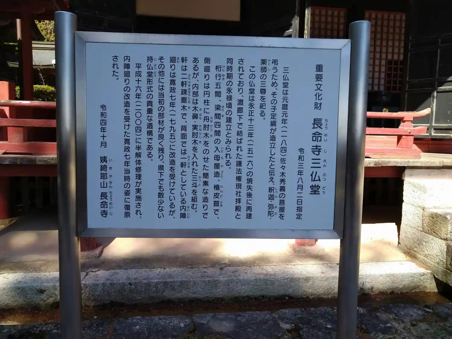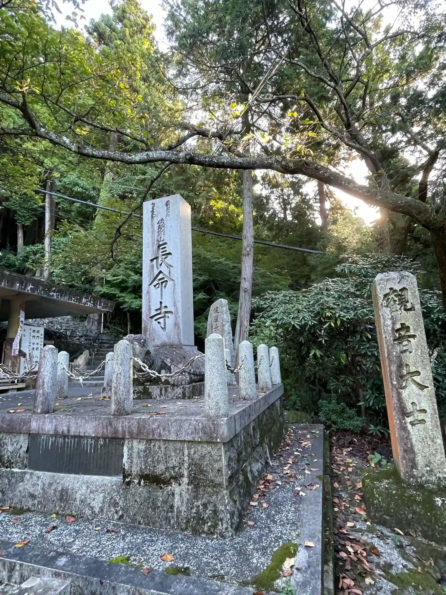 姨綺耶山 長命寺(ちょうめいじ, 天台宗系単立, 619年) 本堂(重文), 鐘楼(重文), 三重…