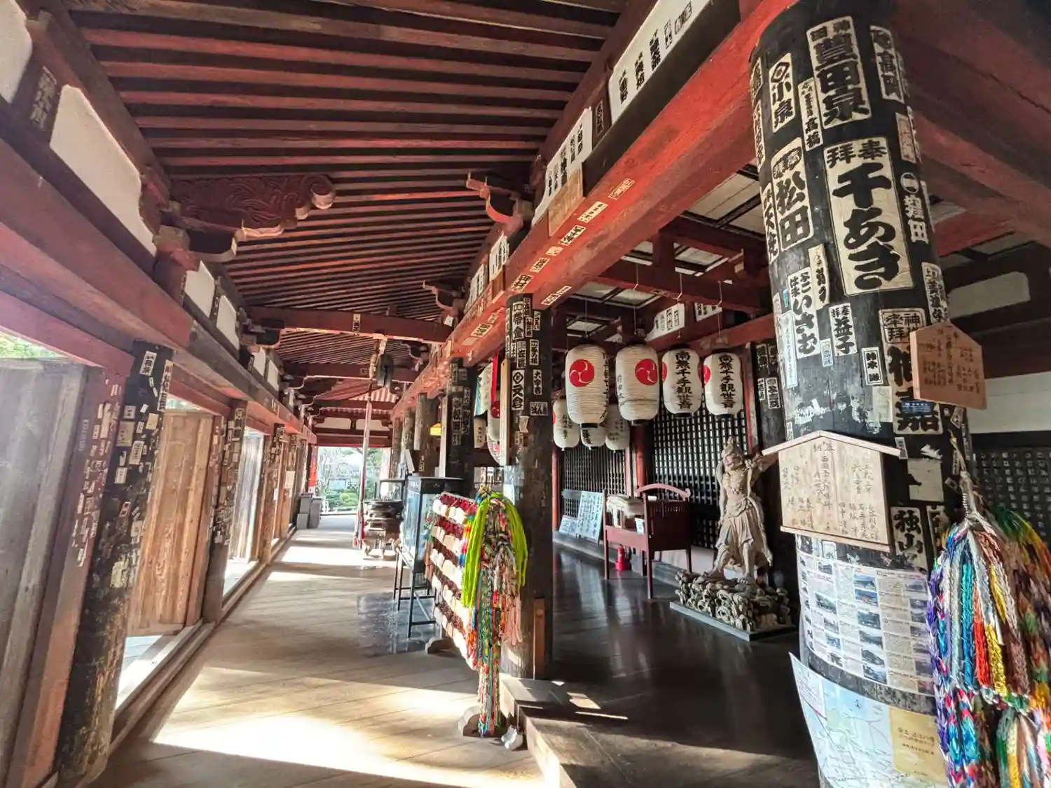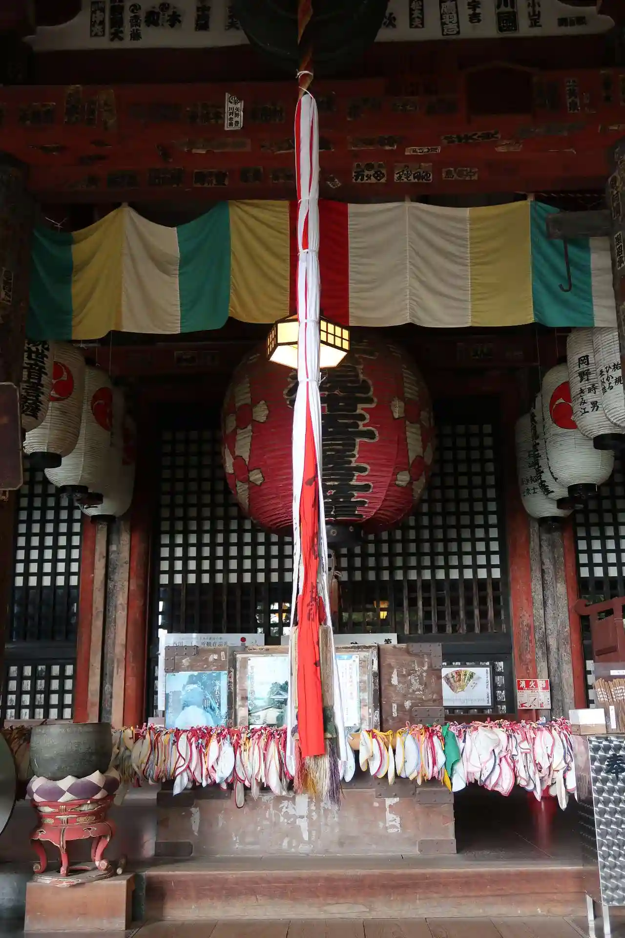 <本堂>内部。大きな赤い提燈が目を引く。
