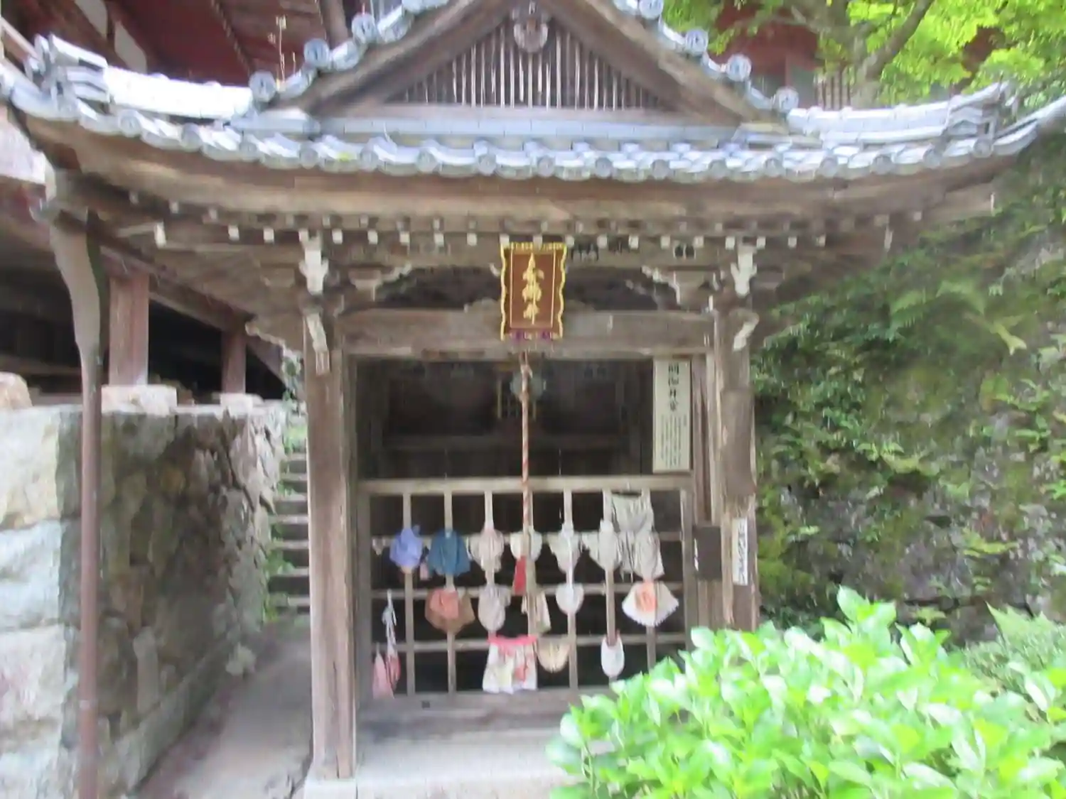 向かう途中、山の中腹にへばりつくように建っているお堂が見えた。すごい所にある…。