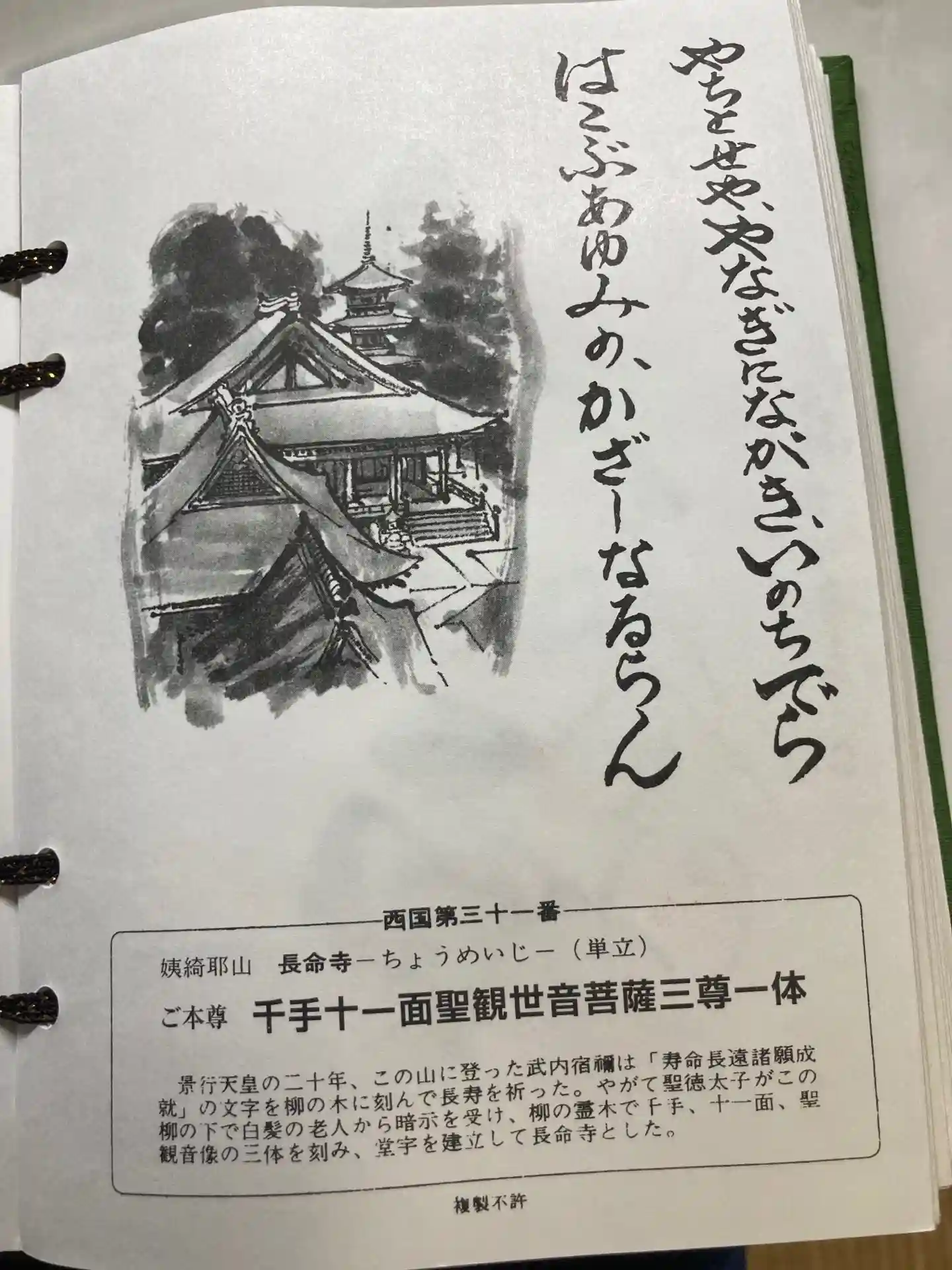 【巡礼の寺:西国三十三観音、三十一番 長命寺】