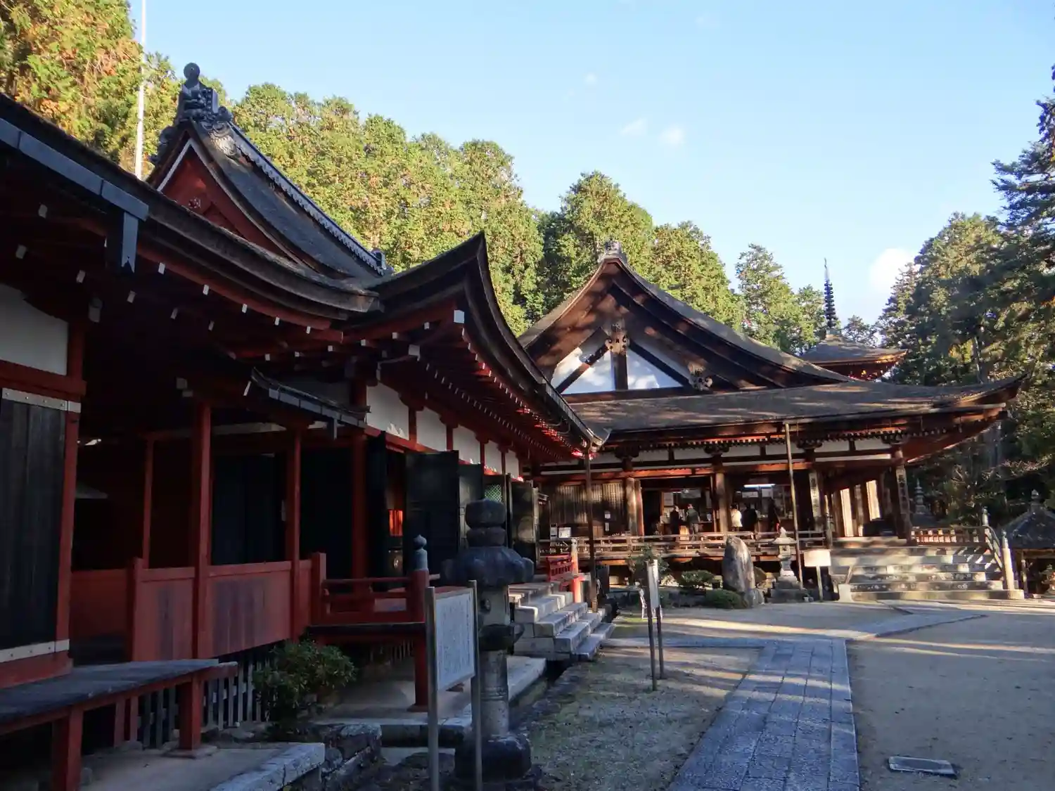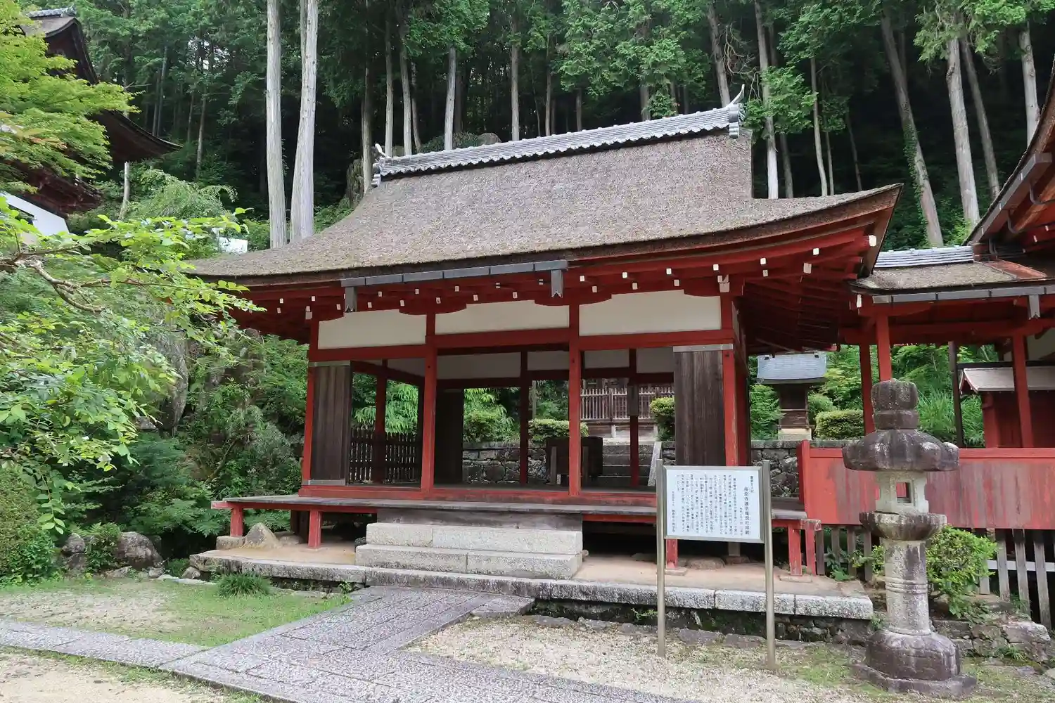 三重塔の隣、本堂との間にある<護摩堂>。三重塔再建の後、1606年に再建。桁行三間、梁間三間、宝形造、檜皮葺、丹塗。国指定の重要文化財。