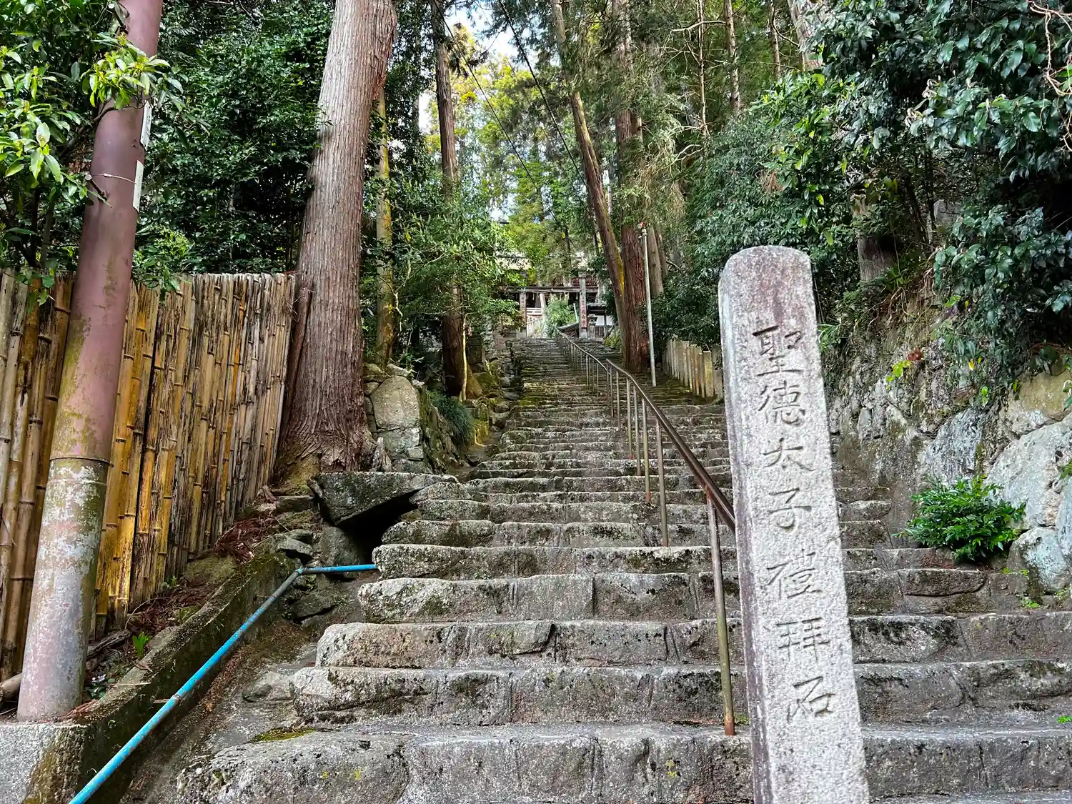 最寄りの駐車場からの参道入口。本来の参道階段は808段だが、ここからだと100段ほどで境内に辿り着く。