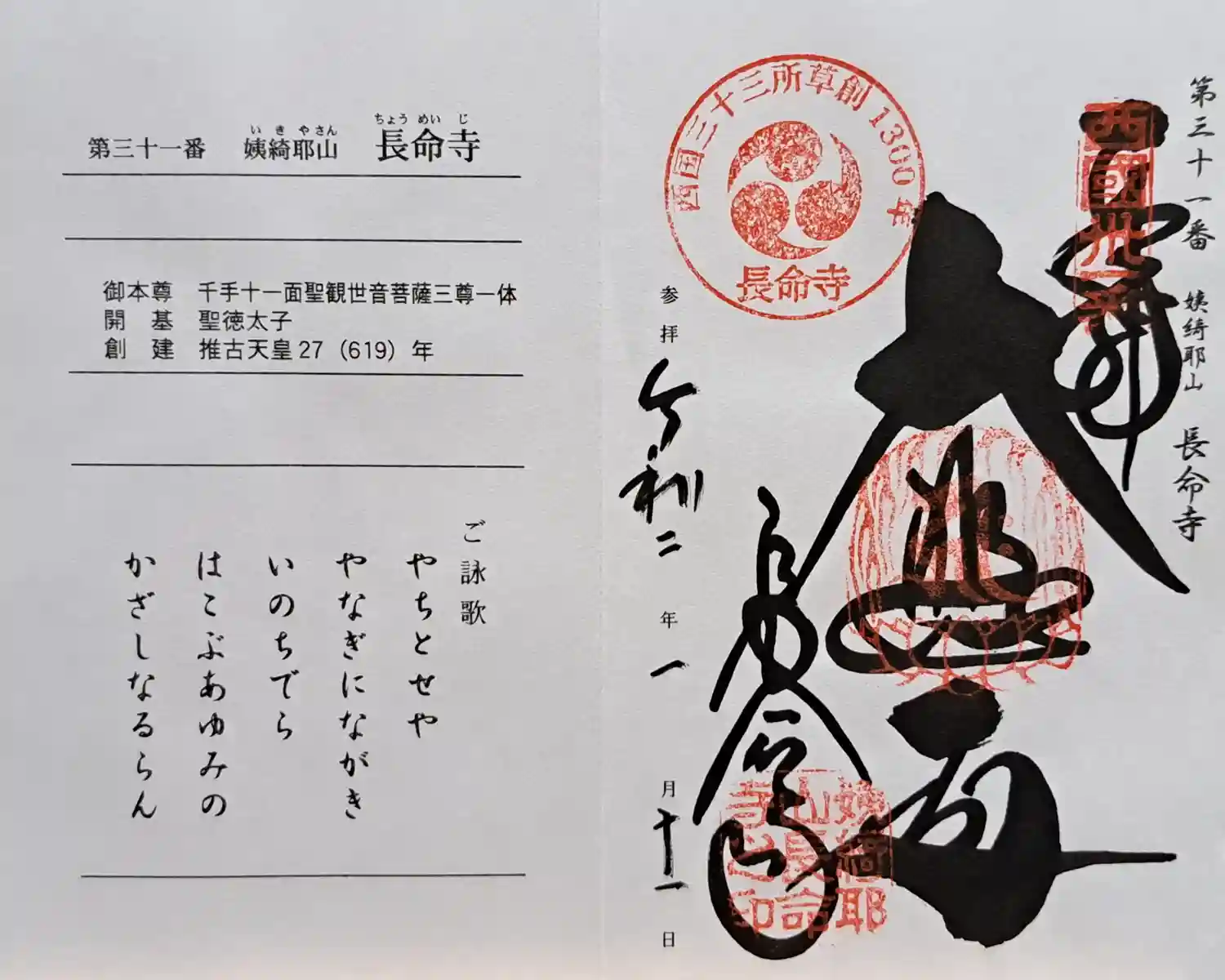 御詠歌【八千年や 柳に長き 命寺運ぶ歩みの かざしなるらん】