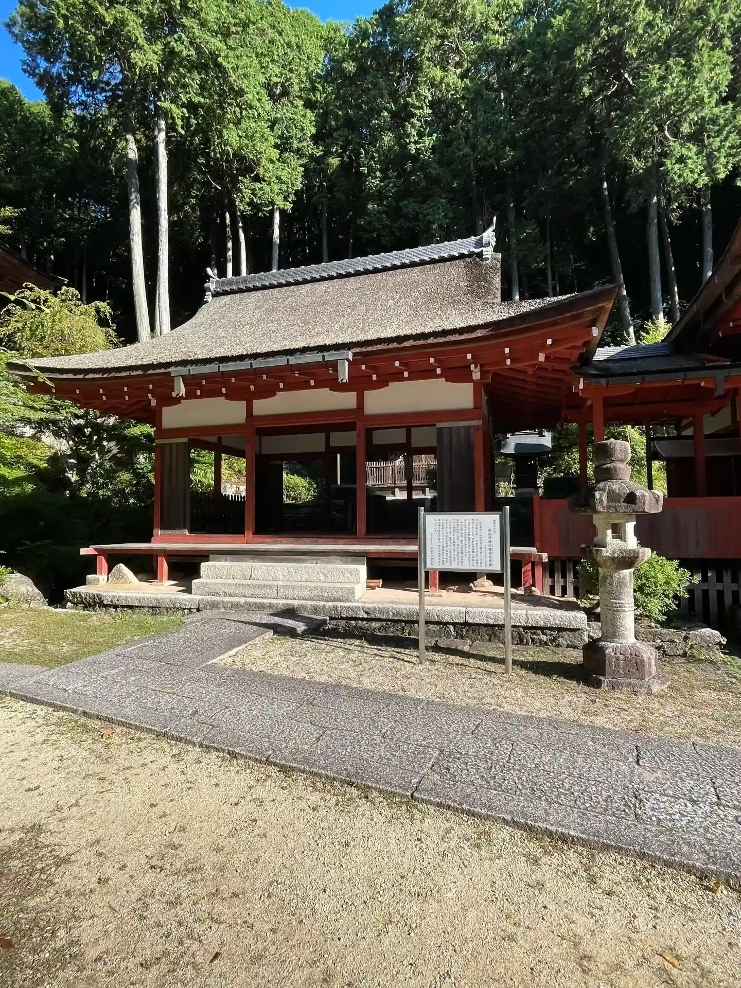 三重塔への階段下、閼伽井堂の向かいにある建物。展示物が置いてある。