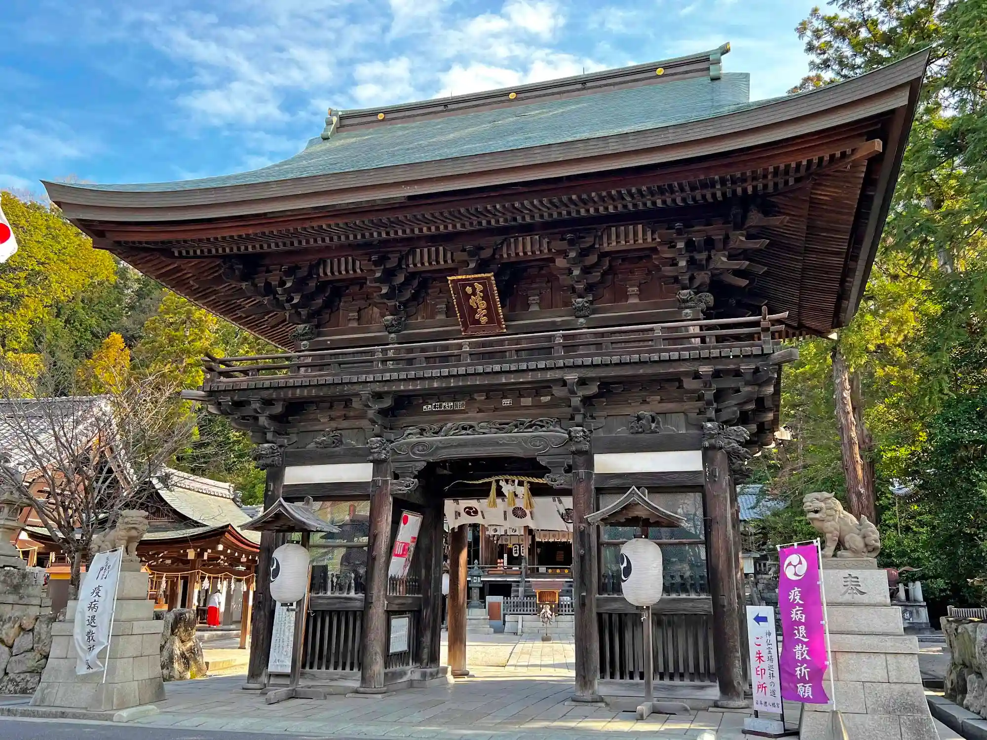 境内西端入口の<隋神門>。1858年の再建。木造入母屋造。