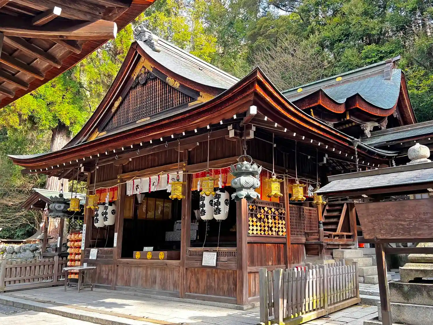 拝殿を横から。左奥が本殿です。