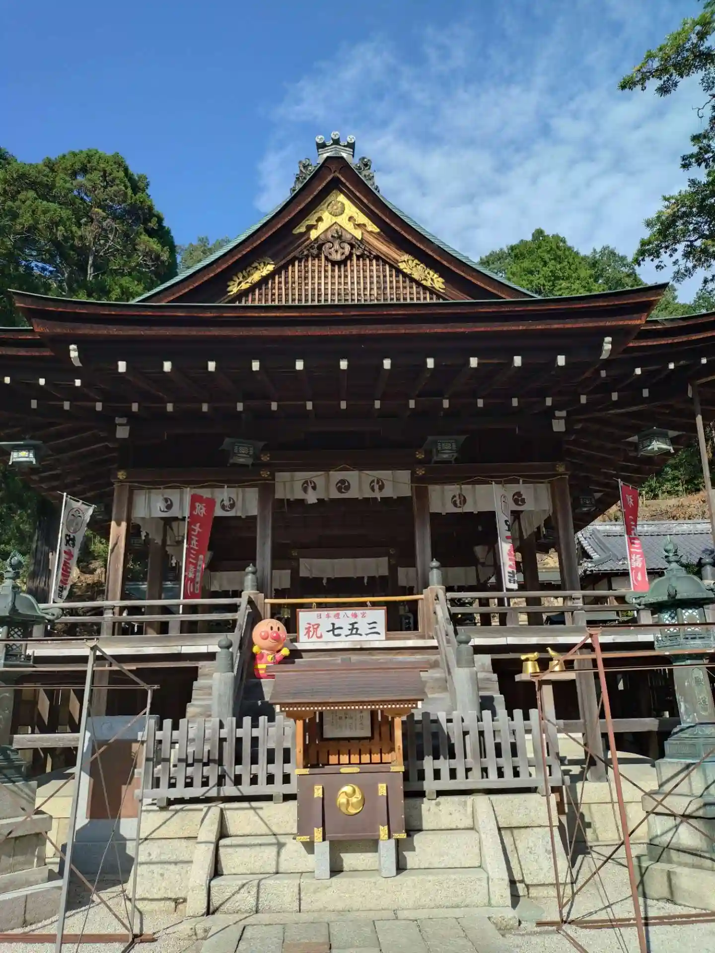 ロープウェイに乗りたかった、と言う幼稚な思考に関係なく麓にはなんと立派な八幡さんでした。…