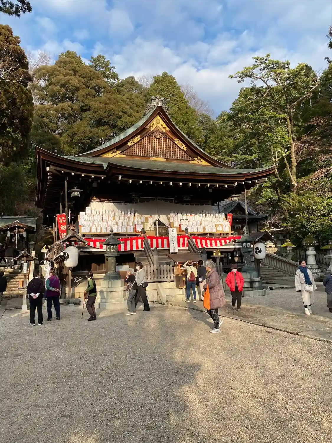 門から拝殿へ向かう初詣のお客様・・・