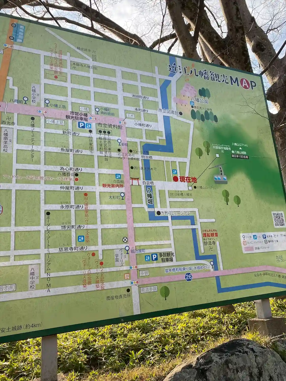 この地の市名「近江八幡市」の八幡と…