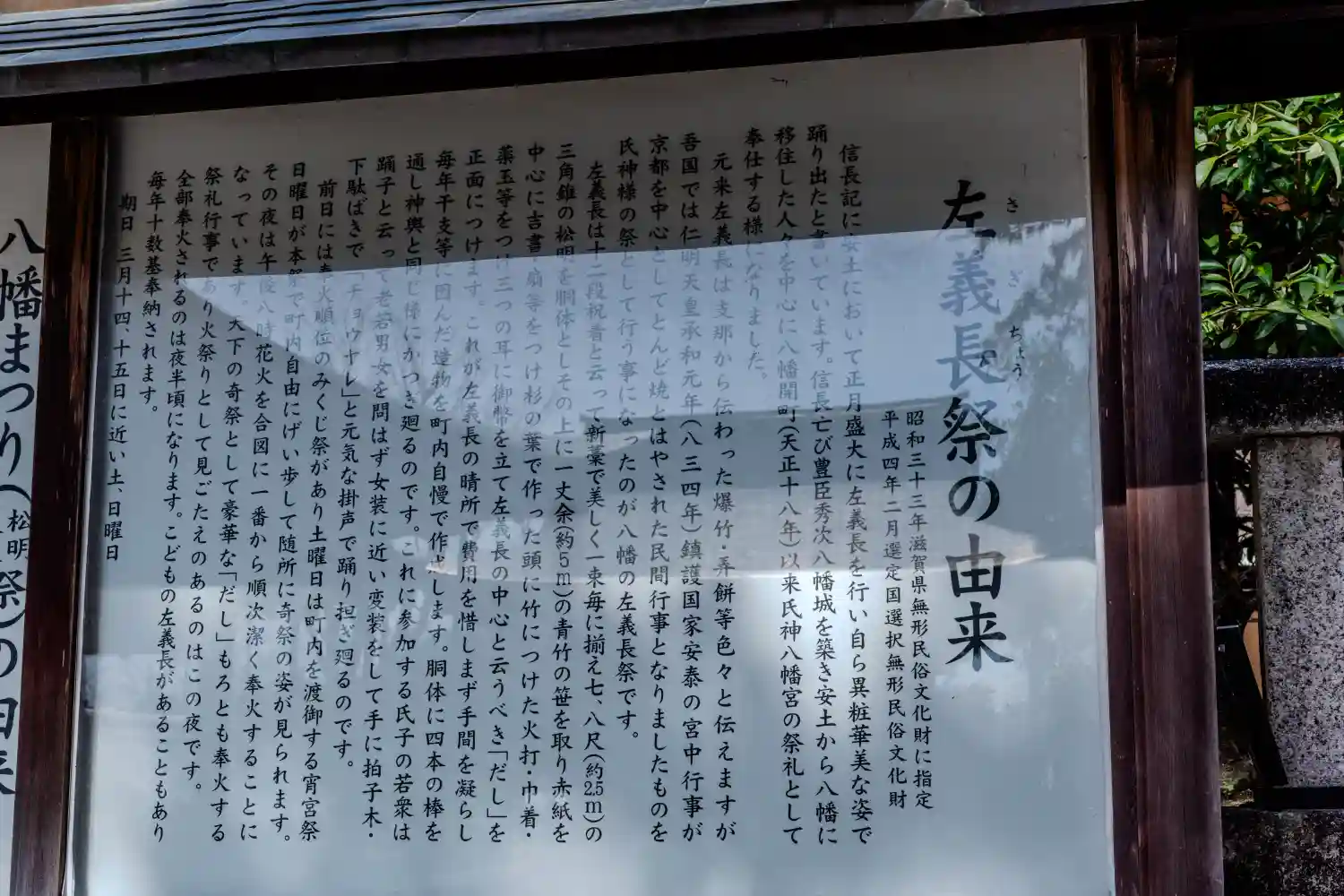 お祭りの説明書です。二月の左義長祭、四月の八幡祭の二大火祭について