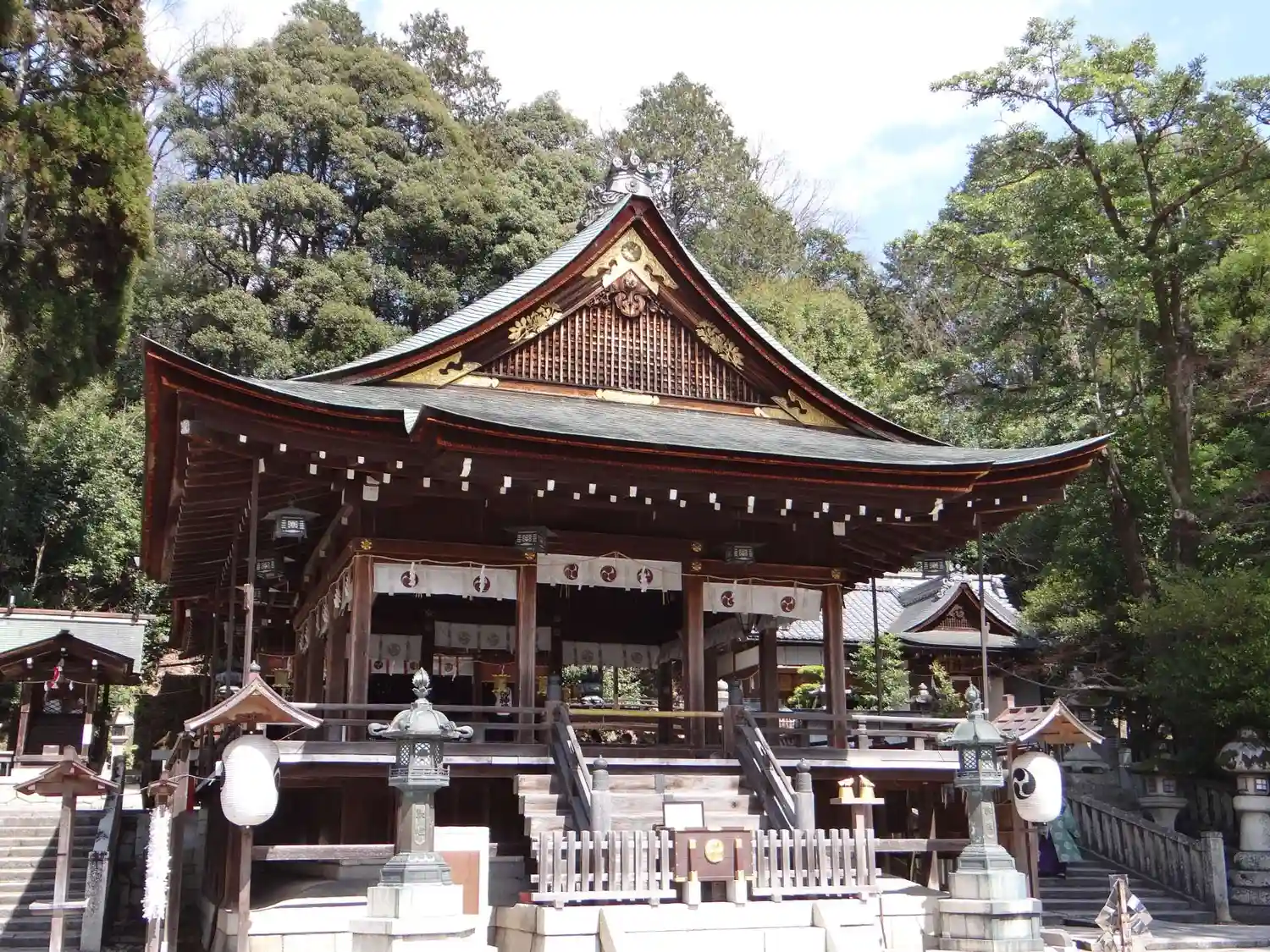 近江八幡市の中心的な神社。成務天皇元年、成務天皇が高穴穂の宮に即位の時、武内宿禰に命じてこの地に大…