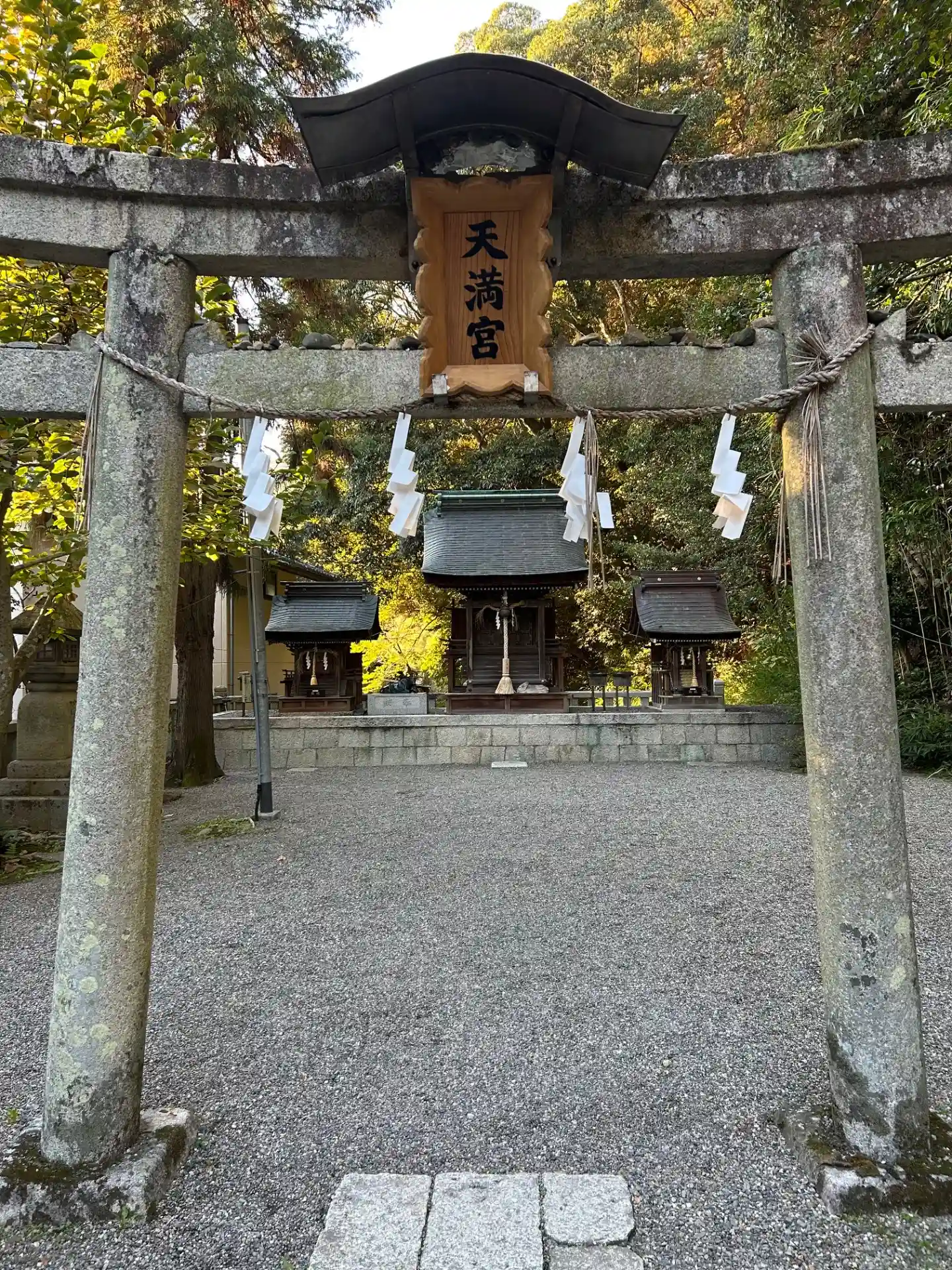 左手突き当りの境内社。左から順に<常盤神社>、<天満宮>、<宮比・子安神社>。