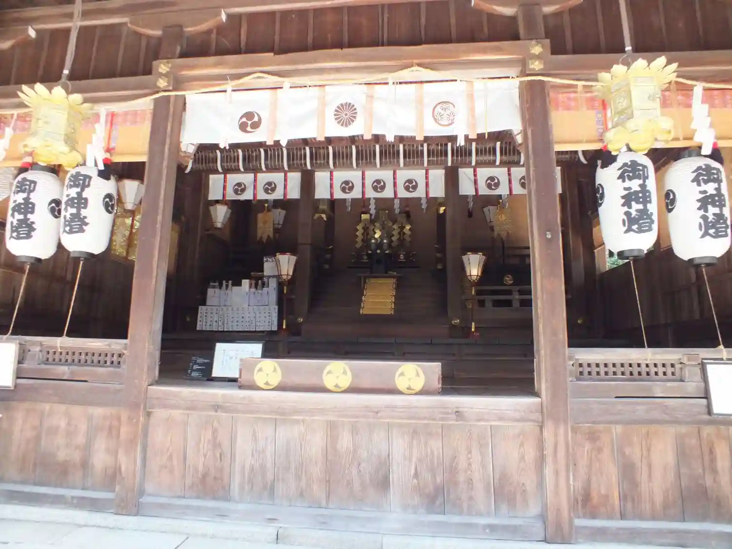 八幡さまのご神紋「三つ巴:の提灯。