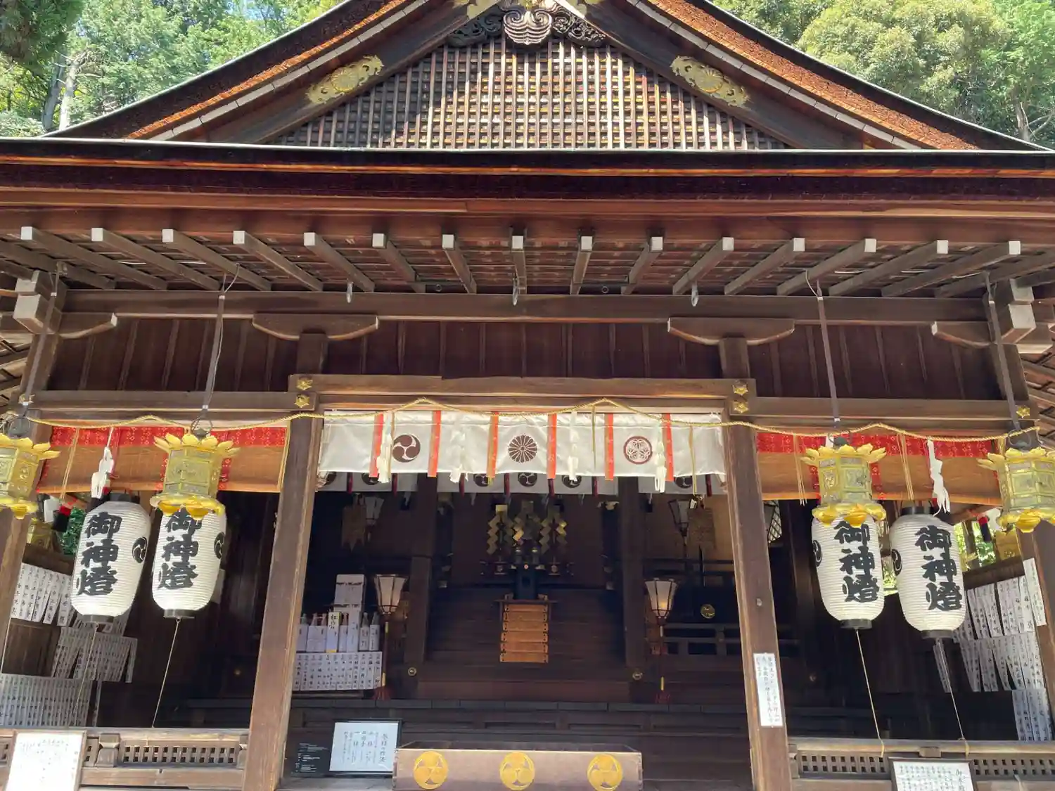 いよいよ参道正面の<拝殿>。木造入母屋造。源頼朝公が近江守護職・佐々木六角に命じて造営。