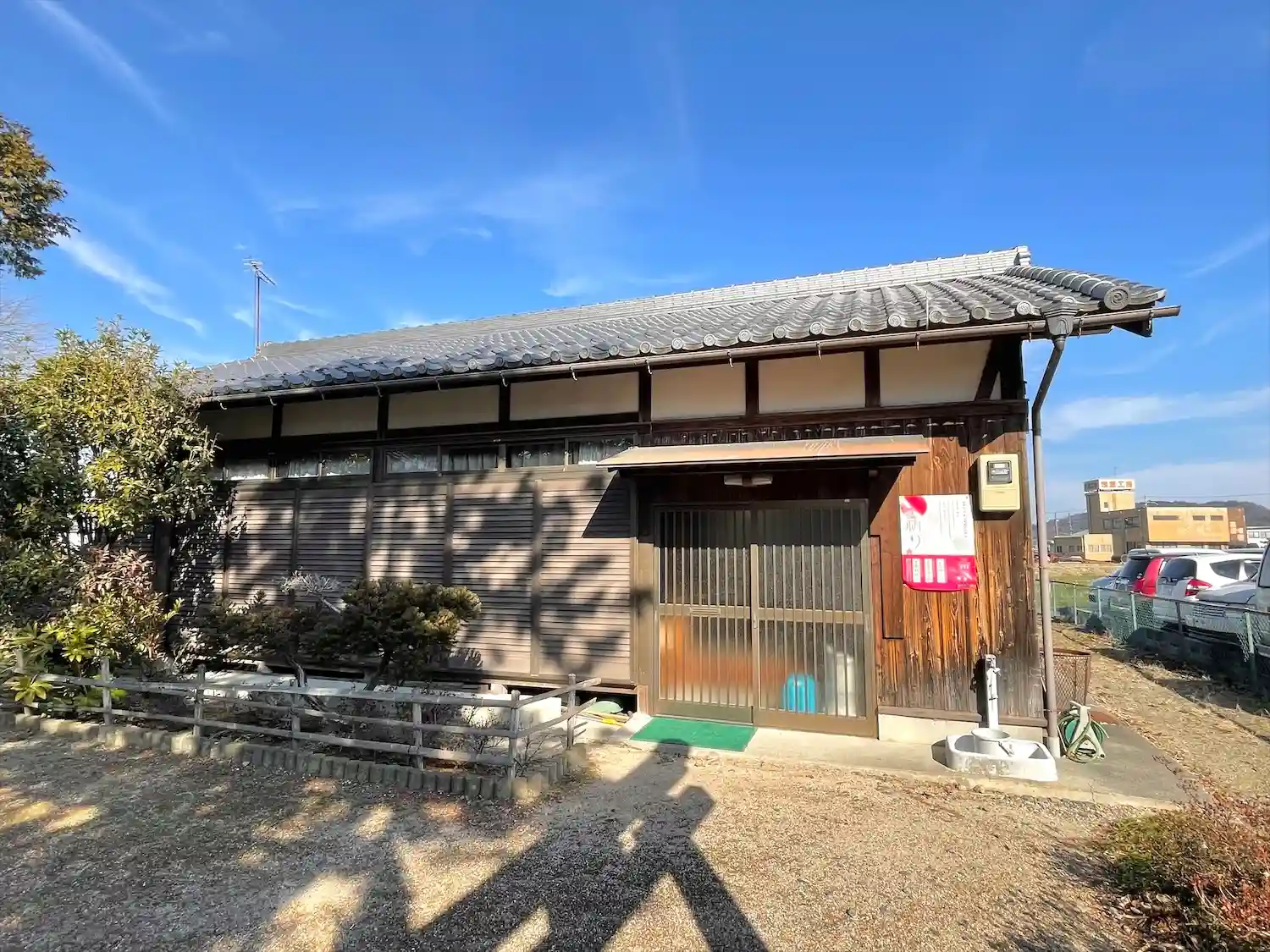 集落の少し奥まった場所で、隣りに遊具のある公園があります。