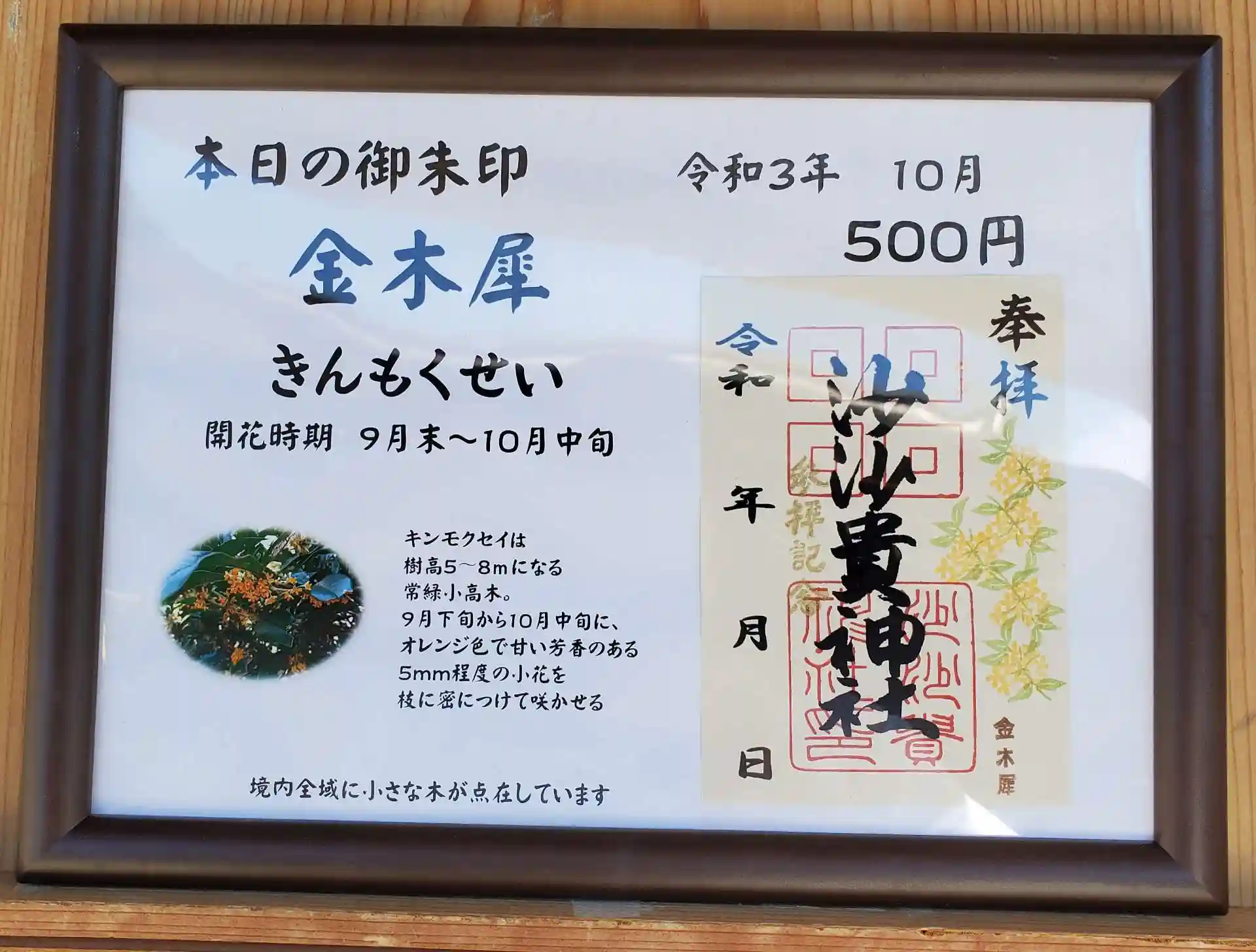季節の花御朱印 金木犀