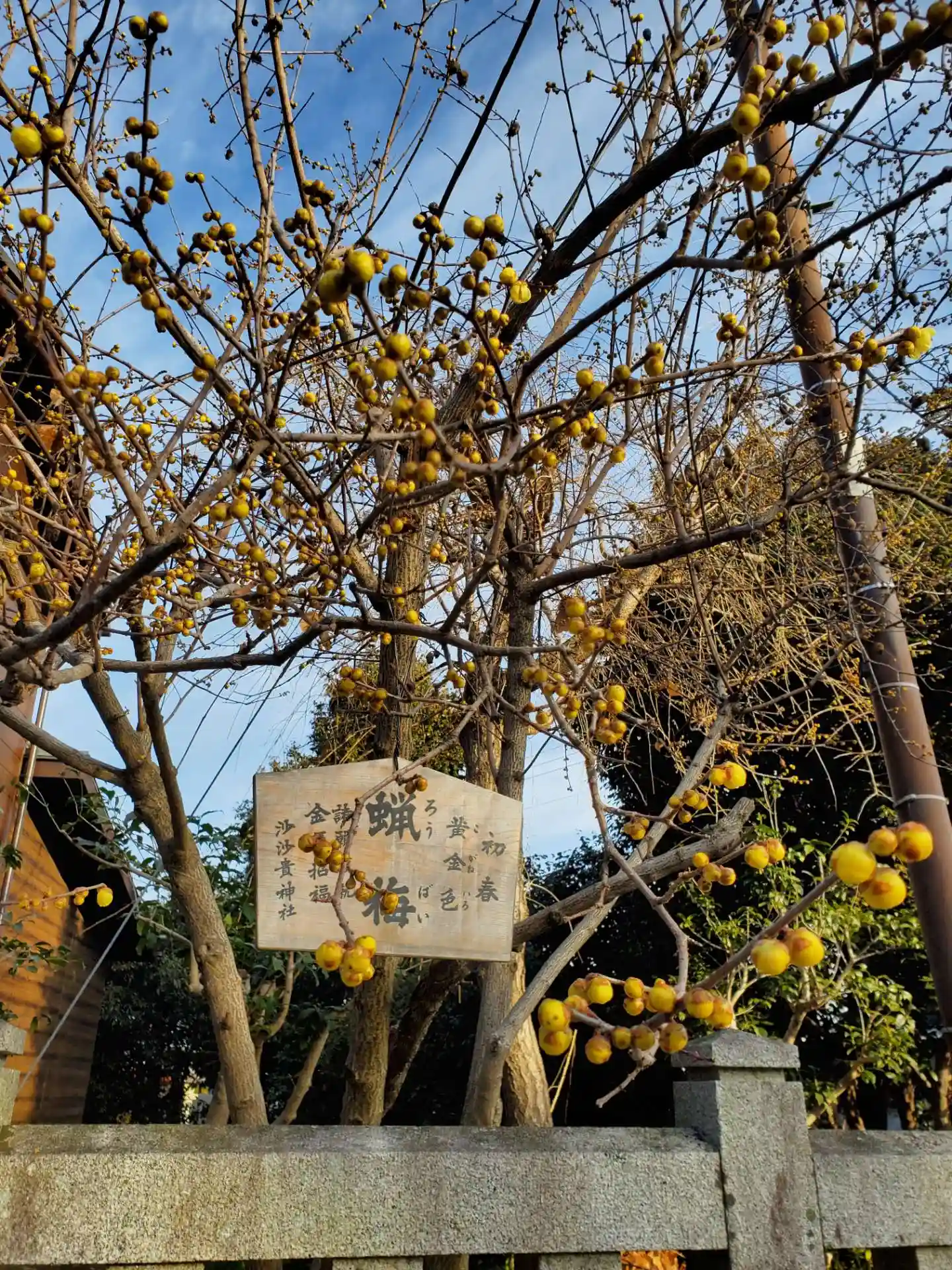新春を彩る 沙沙貴神社の蝋梅(ろうばい)は