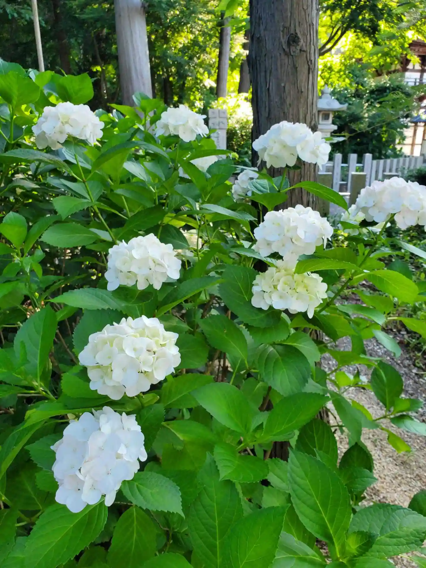 境内のあちこちに植栽している紫陽花。
